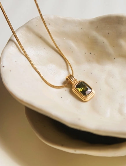 18K Non-Tarnish Green Square Stone Pendant 18K Gold Plating Stainless Steel Cubic Zirconia