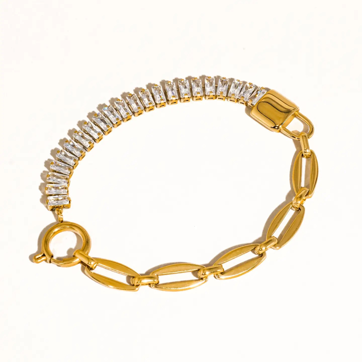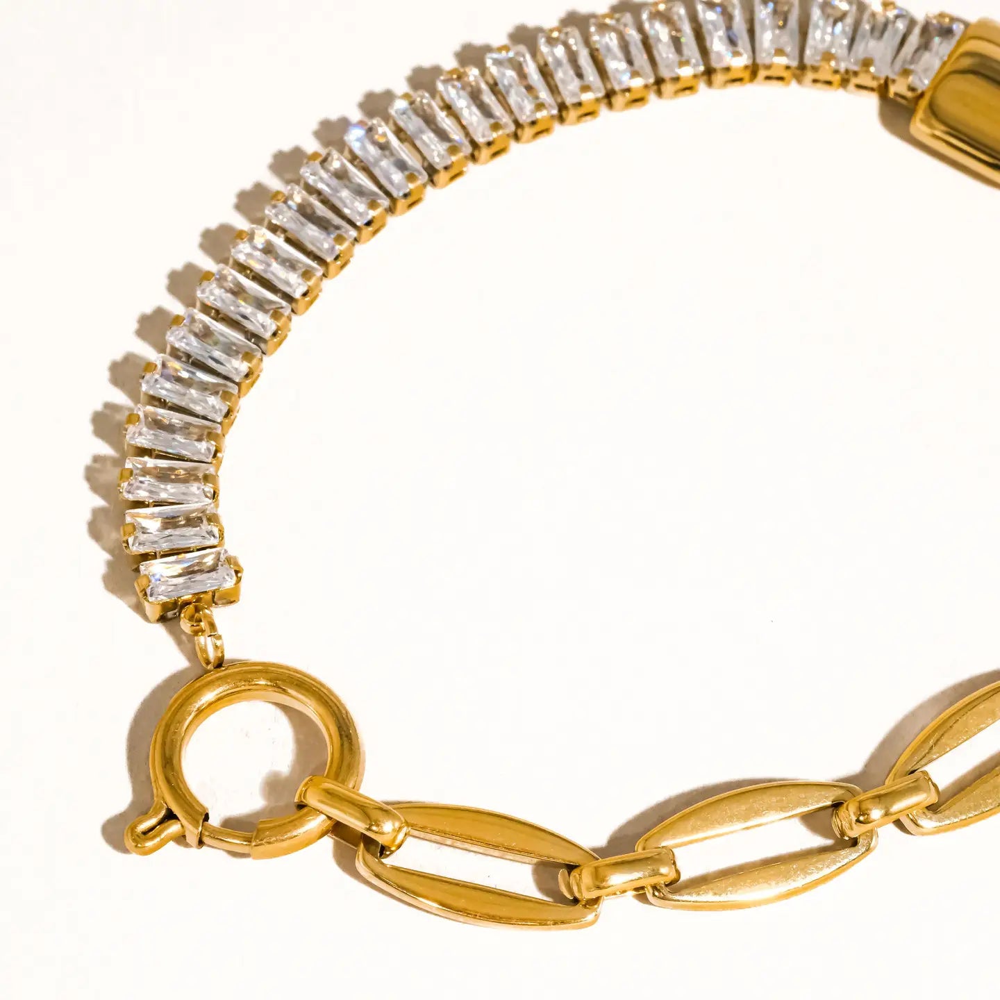 • 18K Gold Non-Tarnish Rhinestone Chain Bracelet