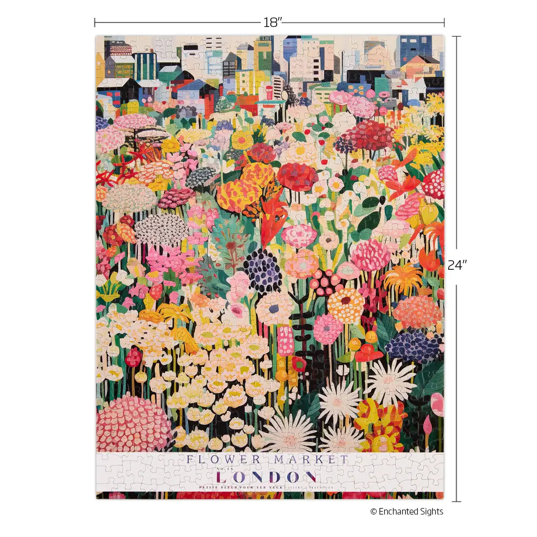 An abundance of flowers against a London skyline adorns this travel poster-themed 500-piece puzzle. Calling all puzzle lovers. Look no further for the perfect puzzles to take you away from your screens and technology to an experience of art interaction. Piece by piece, your mind will feel the shift from tech to the high touch of hands-on satisfaction and enjoyment.