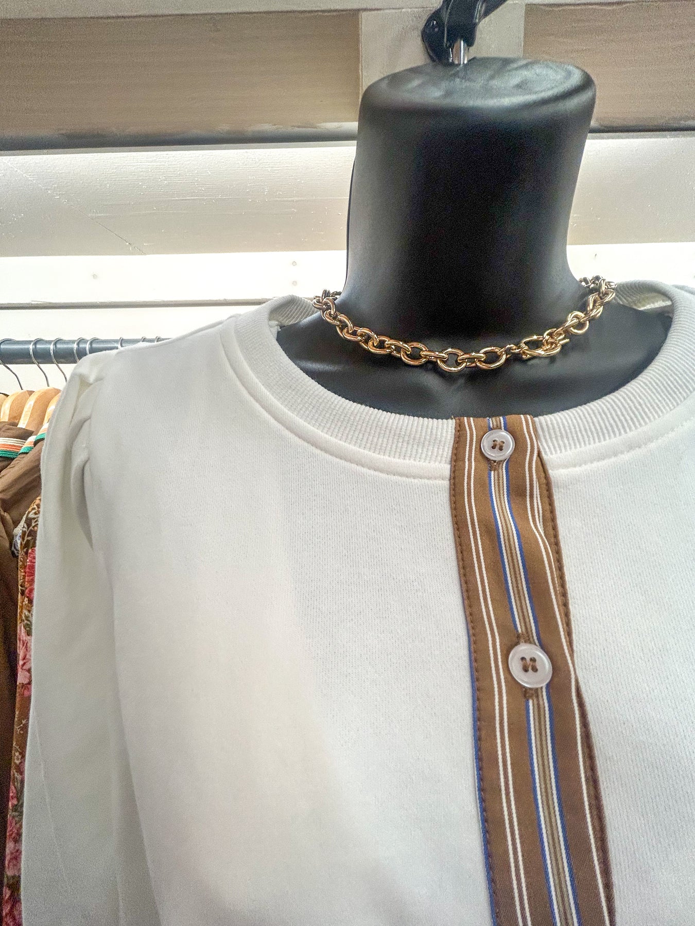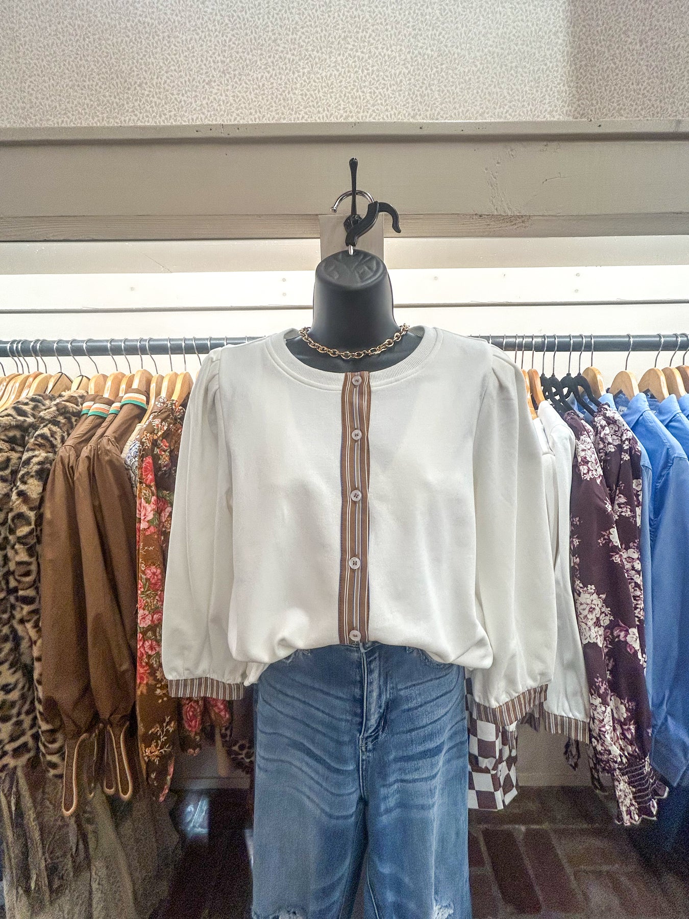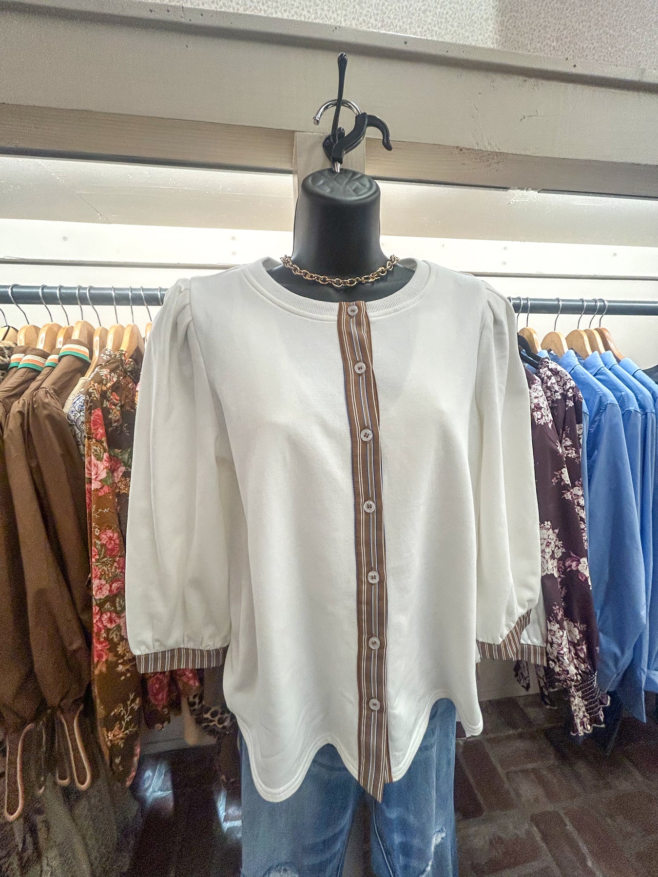 Elevate your everyday wardrobe with this versatile off-white button-down top.