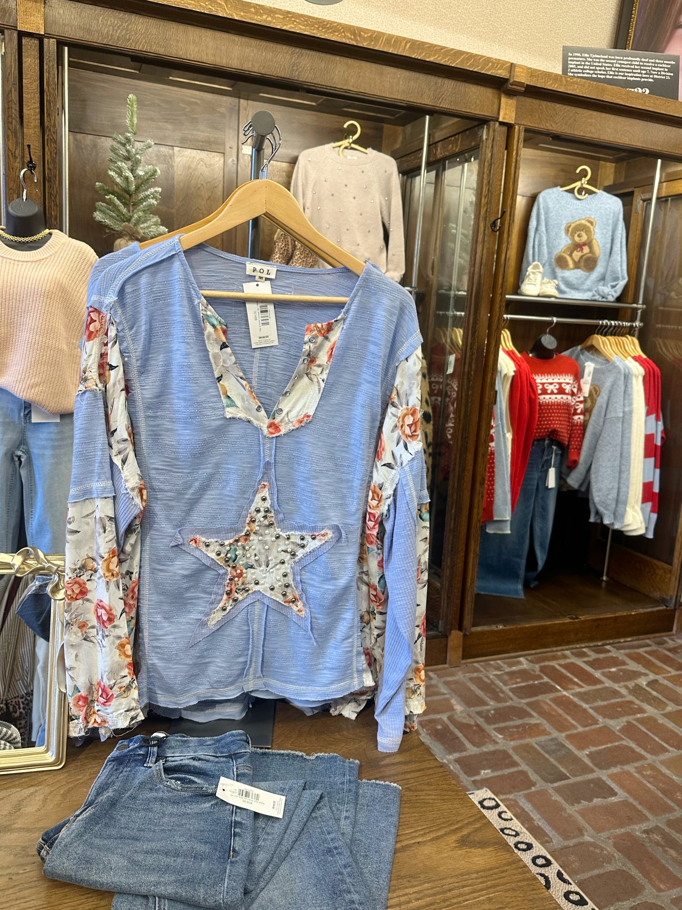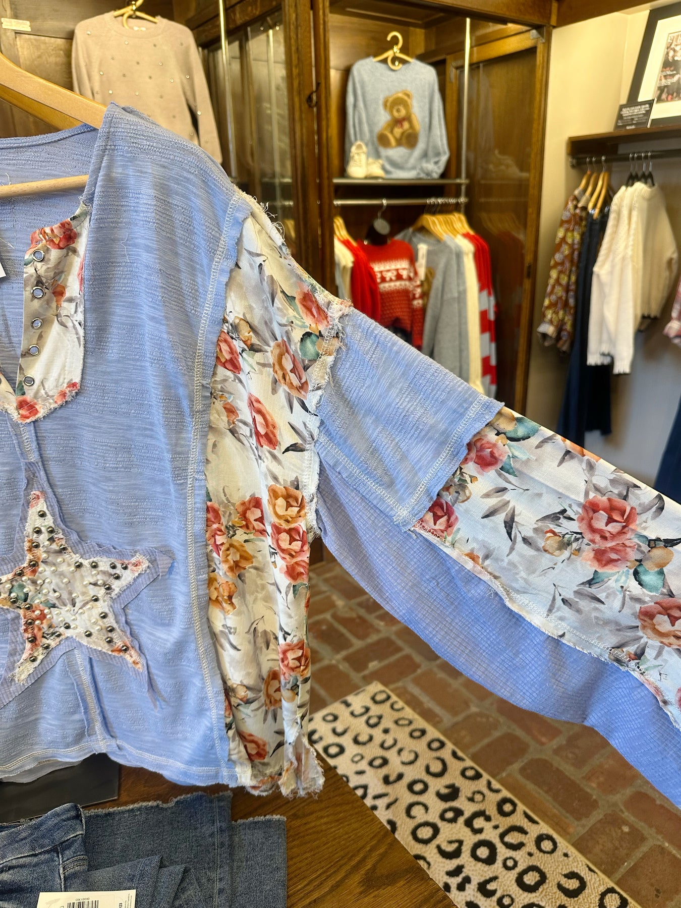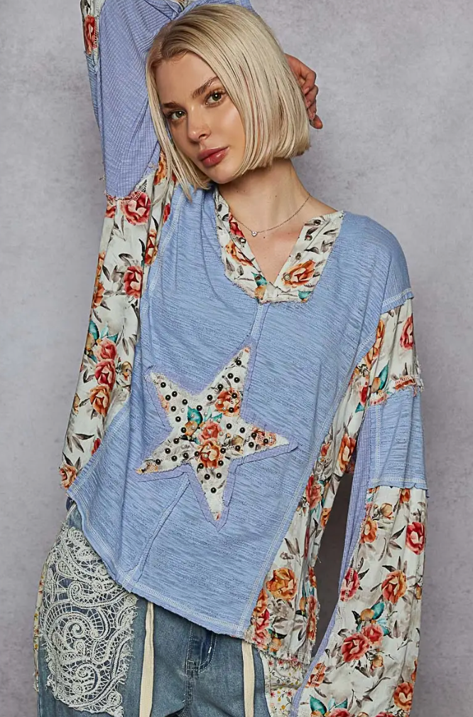 Elevate your everyday wardrobe with this effortlessly chic V-neck top. Crafted from textured slub fabric, it features a relaxed silhouette that flatters every frame while the full sleeves provide understated elegance. The standout stud-detailed pointed floral pattern adds visual interest and personality, making it perfect for layering or wearing solo. Whether you're dressing up for brunch or keeping it casual, this versatile piece transitions seamlessly from day to night.