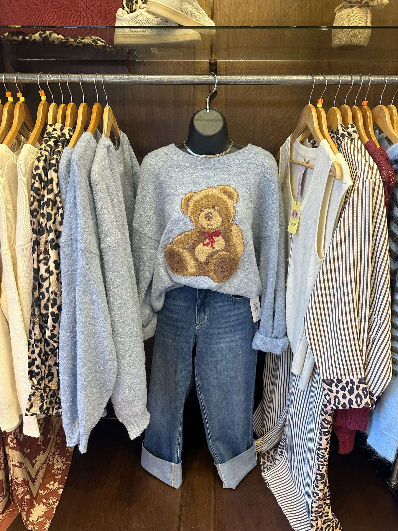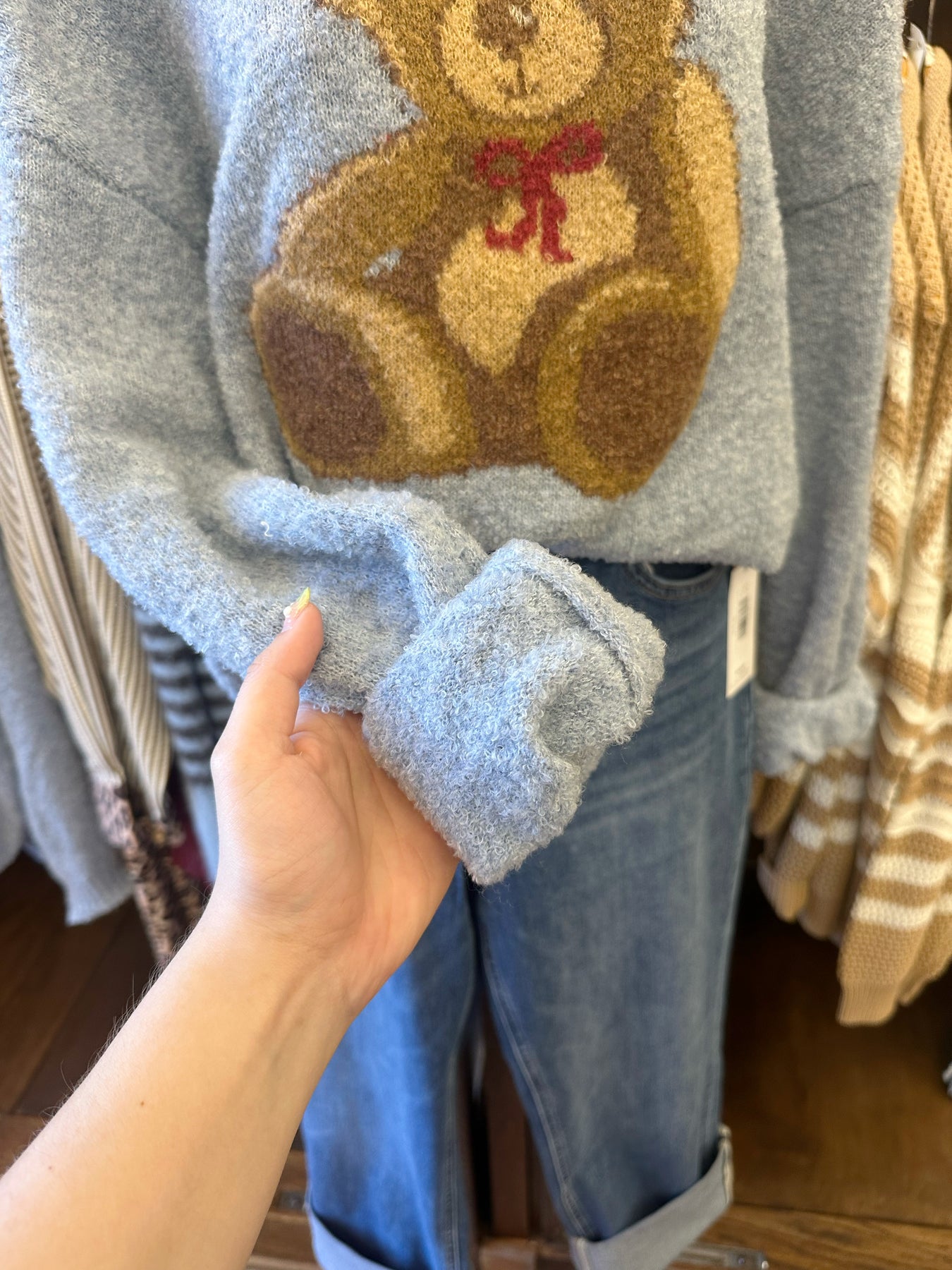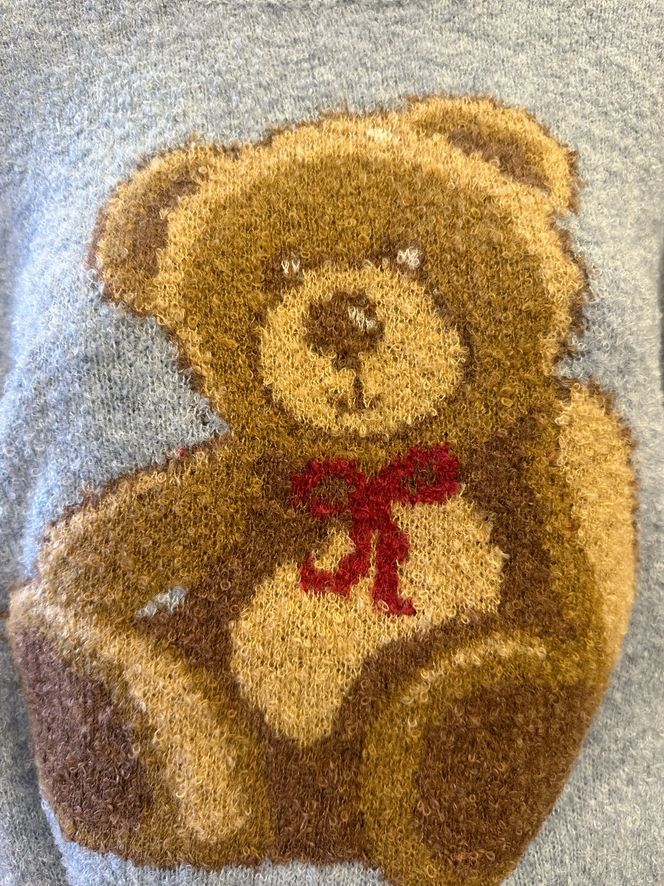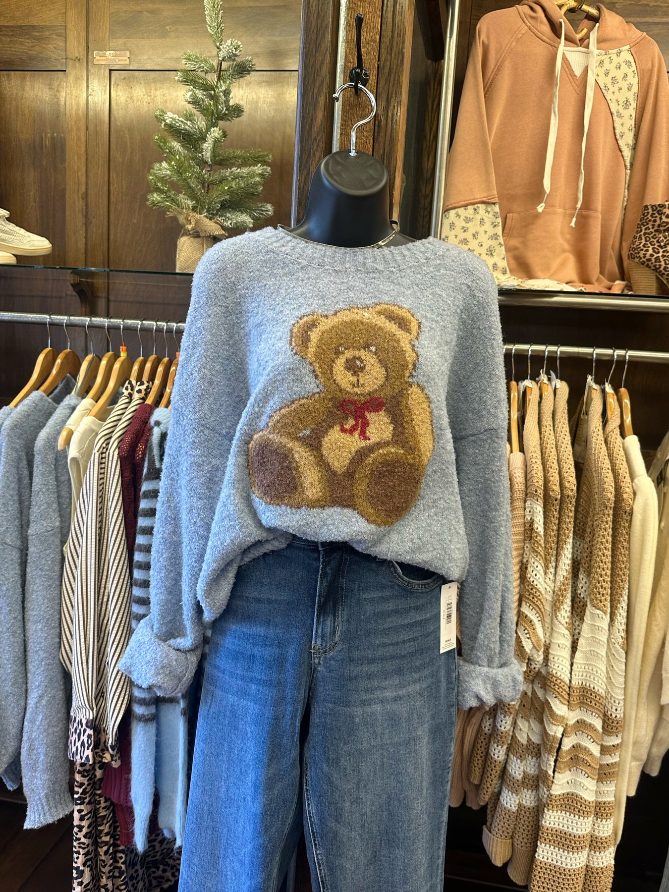 Wrap yourself in comfort with our Blue Teddy Bear Sweater, the perfect blend of style and coziness. Featuring an adorable teddy bear design on the front, this long sleeve sweater delivers warmth without sacrificing charm. The soft, plush fabric feels like a gentle hug against your skin, making it ideal for relaxed weekends, casual outings, or cozy nights in. Whether you're layering for cooler weather or wearing it solo, this sweater brings a playful touch to your everyday wardrobe. Embrace the comfort you deserve with a piece that's as inviting as it is eye-catching.