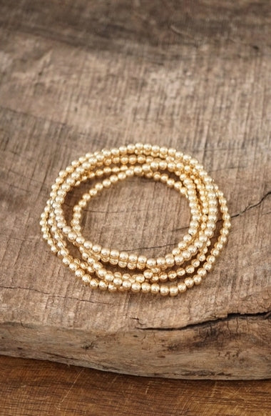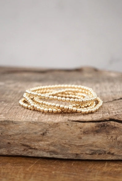 Gold tone small ball beads bracelet stack of 5 bracelets