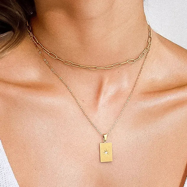 • 18K Gold Non-Tarnish Layered Astro Chain Necklace