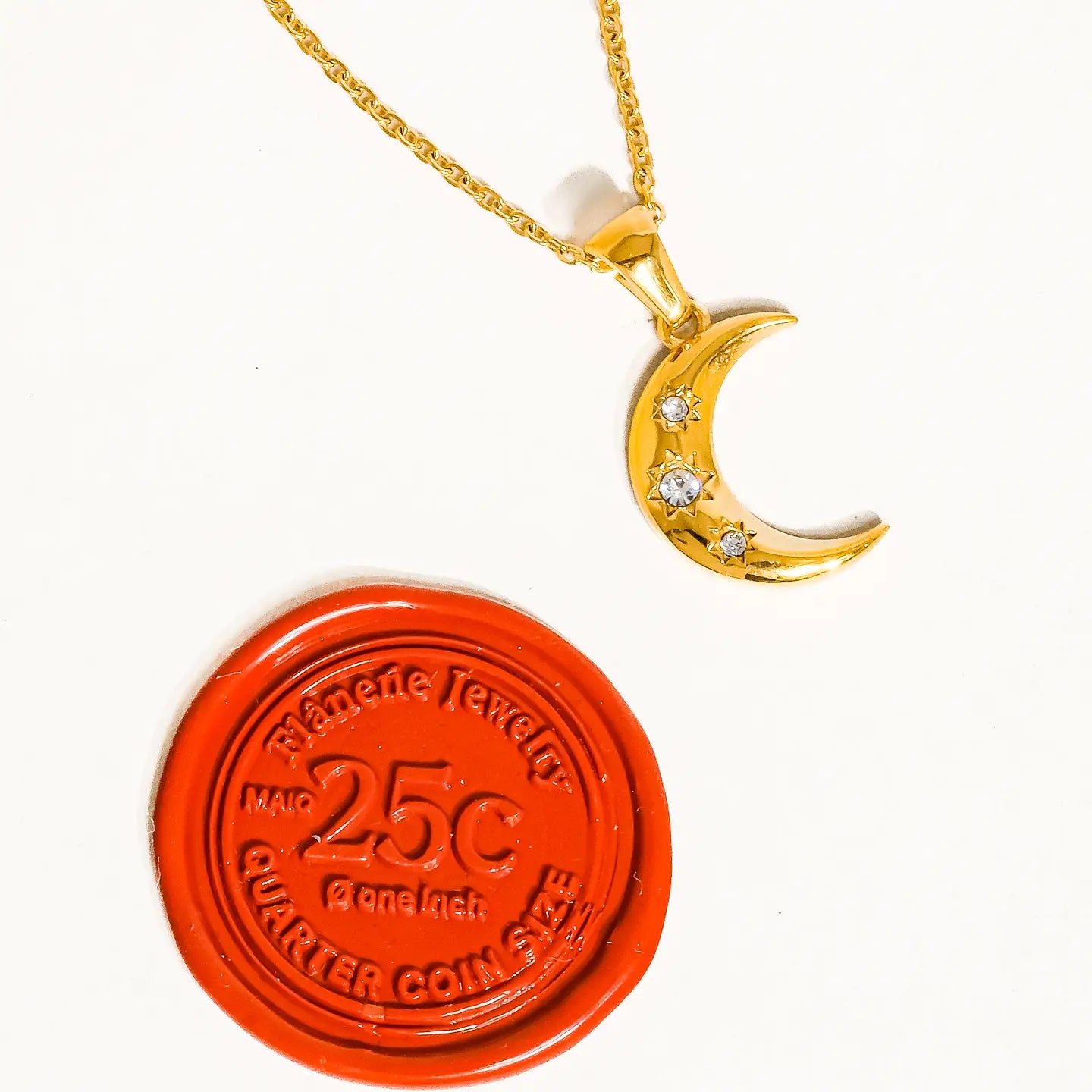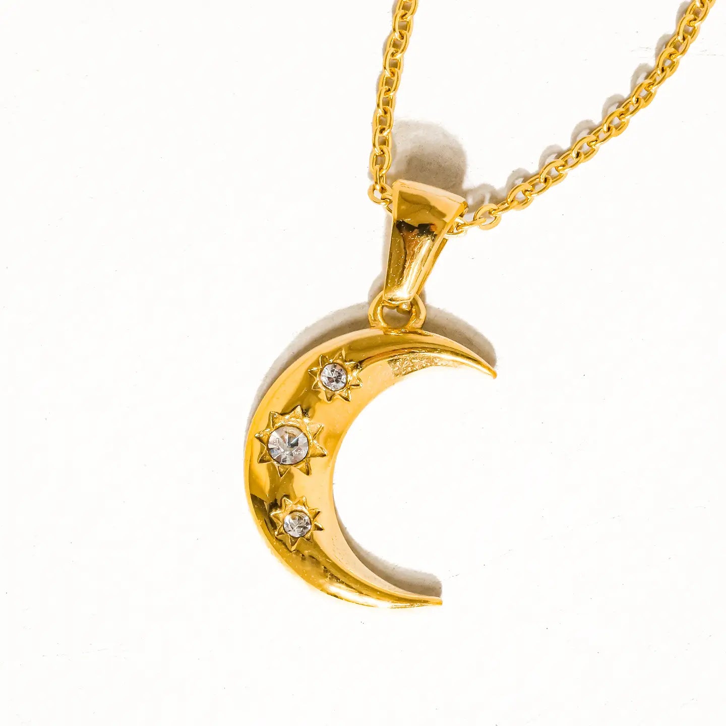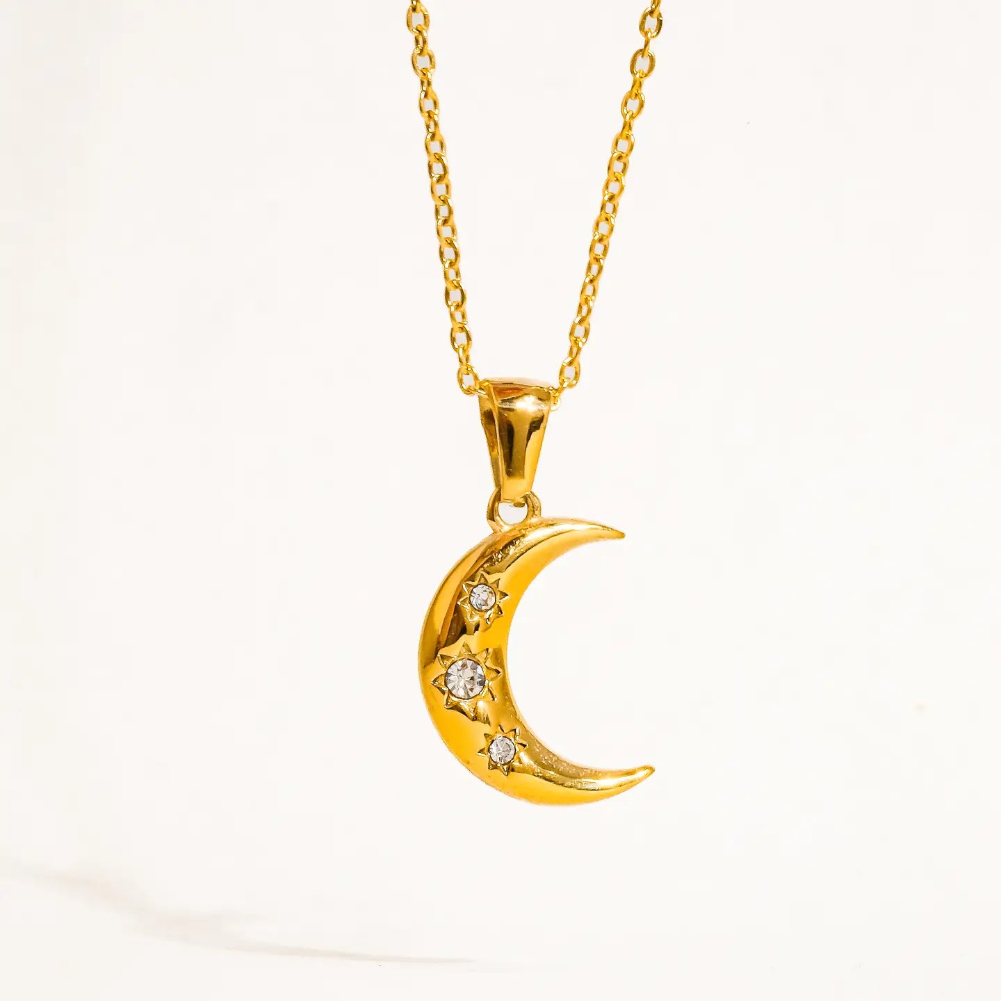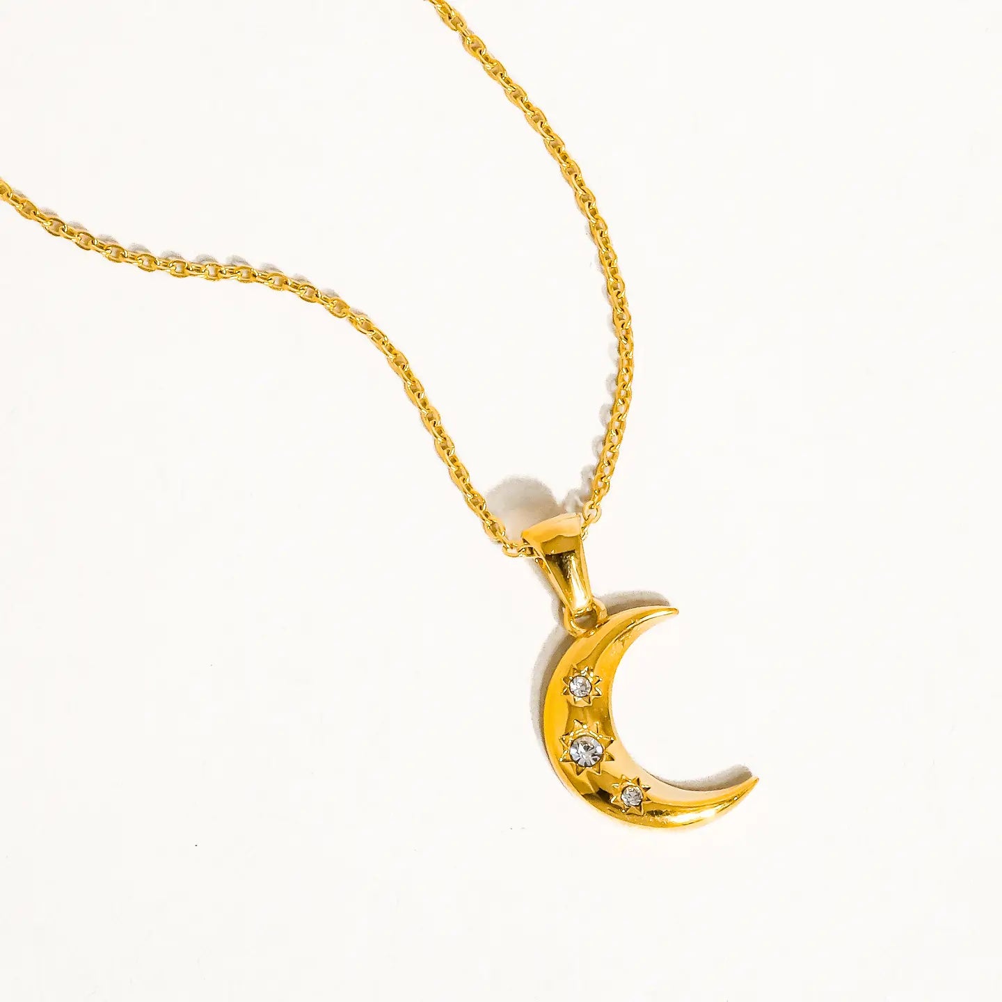 Elevate your everyday style with our Water Resistant Half Moon Necklace—a versatile piece that transitions seamlessly from day to night. Crafted to withstand moisture and daily wear, this elegant crescent design adds a touch of celestial charm to any outfit. Perfect for layering or wearing solo, it's the accessory you'll reach for again and again.