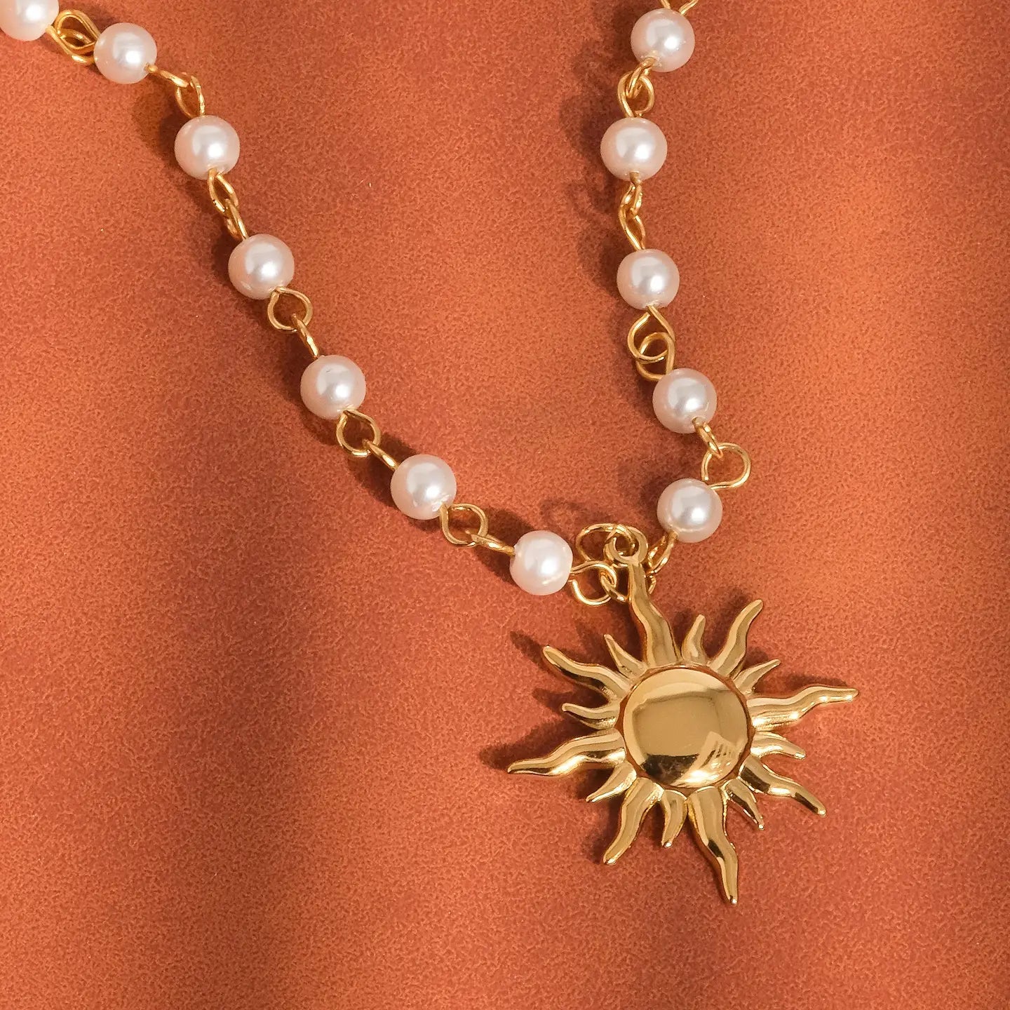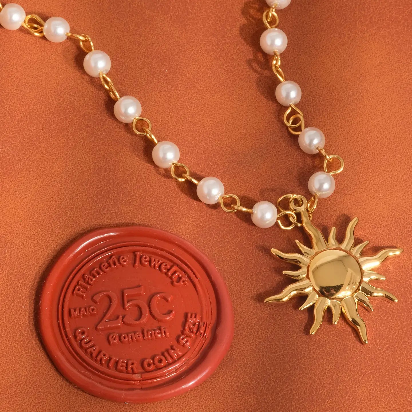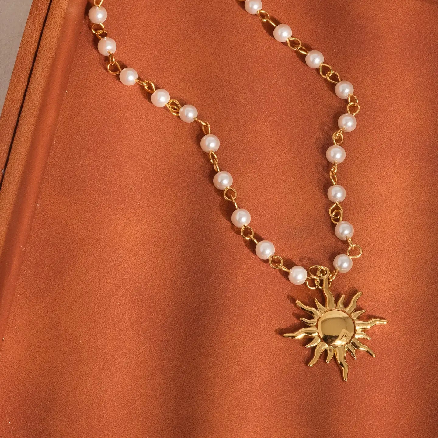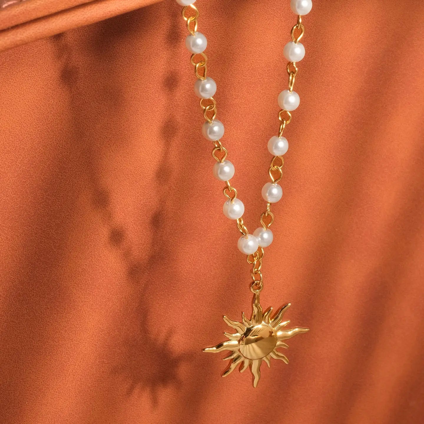 • 18K Gold Non-Tarnish Sun Beaded Necklace