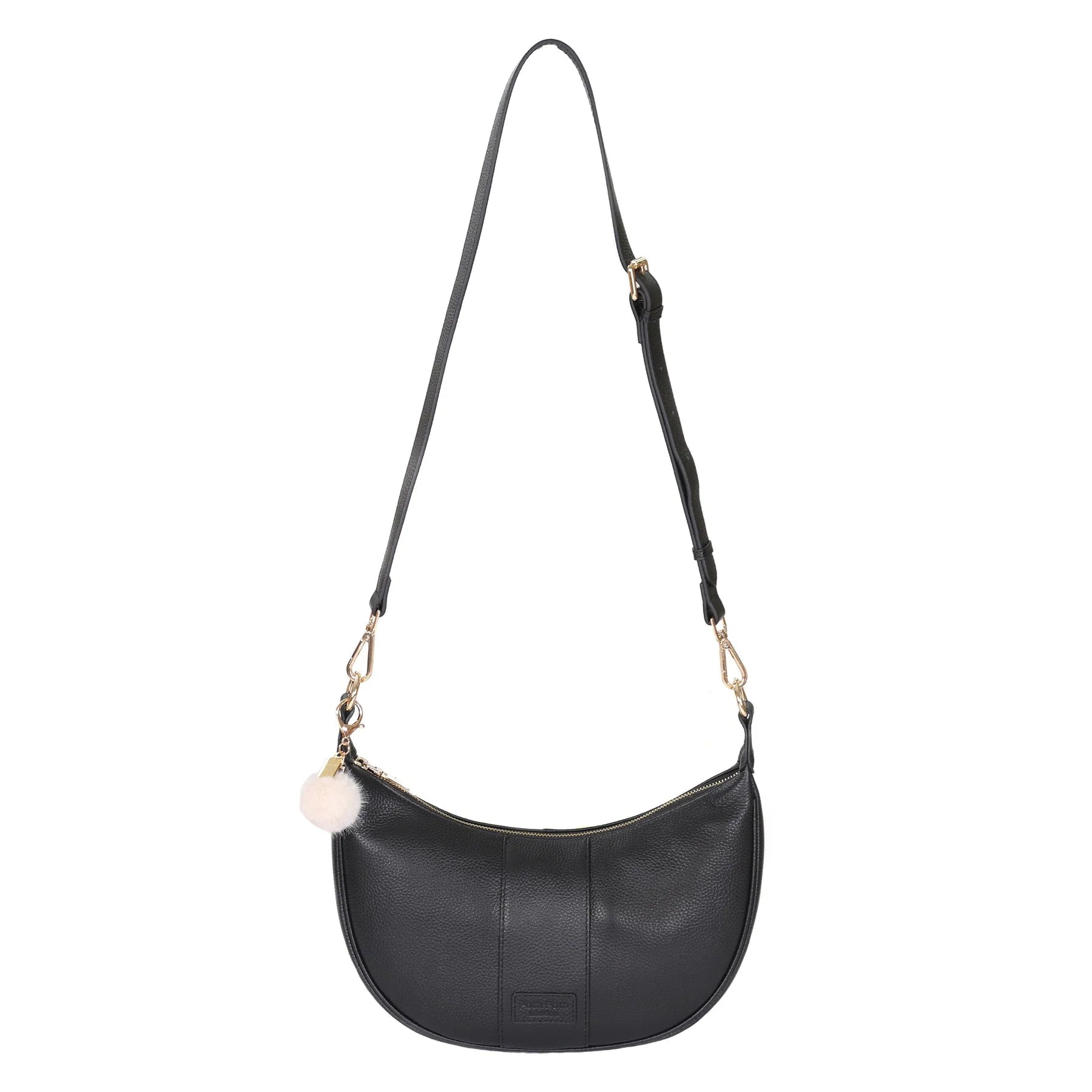 The Sutton Sling in Black is an essential for everyday wear. Its crescent shape and soft lines create a modern yet classic silhouette. This bag fits all your essentials (and a little extra) while ensuring all day comfort. Whether worn over the shoulder or across the body, the detachable leather strap and rolled edge shoulder strap allow you to carry it your way. The perfect companion, no matter where the day takes you.