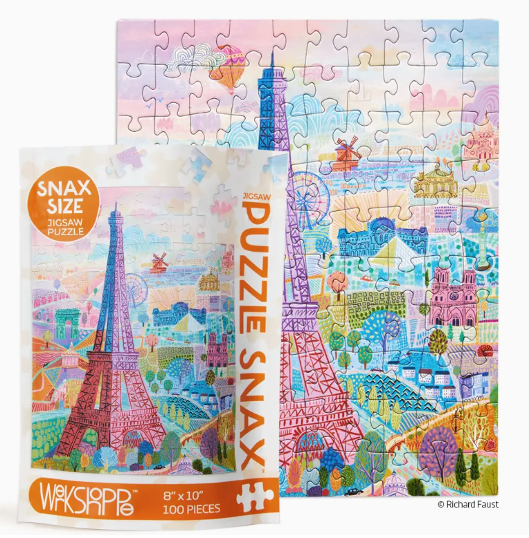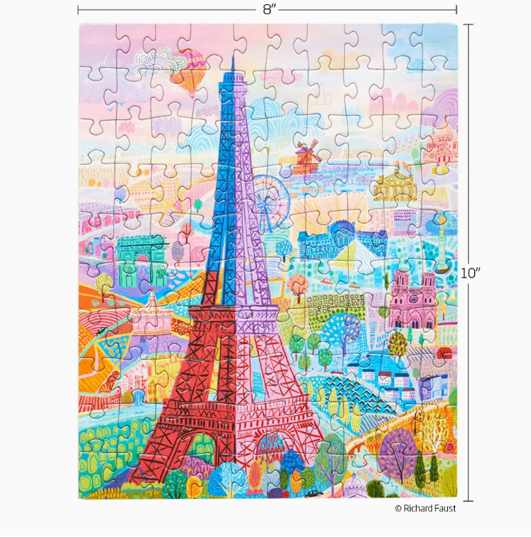Experience the charm of Paris with this vibrant 100-piece puzzle. Each colorful piece snaps together to reveal iconic landmarks and lively scenes, offering a fun and engaging challenge. Perfect for all ages, it’s a delightful way to unwind while enjoying a mini escape to the City of Lights. Bring the magic of Paris into your home—piece by piece.