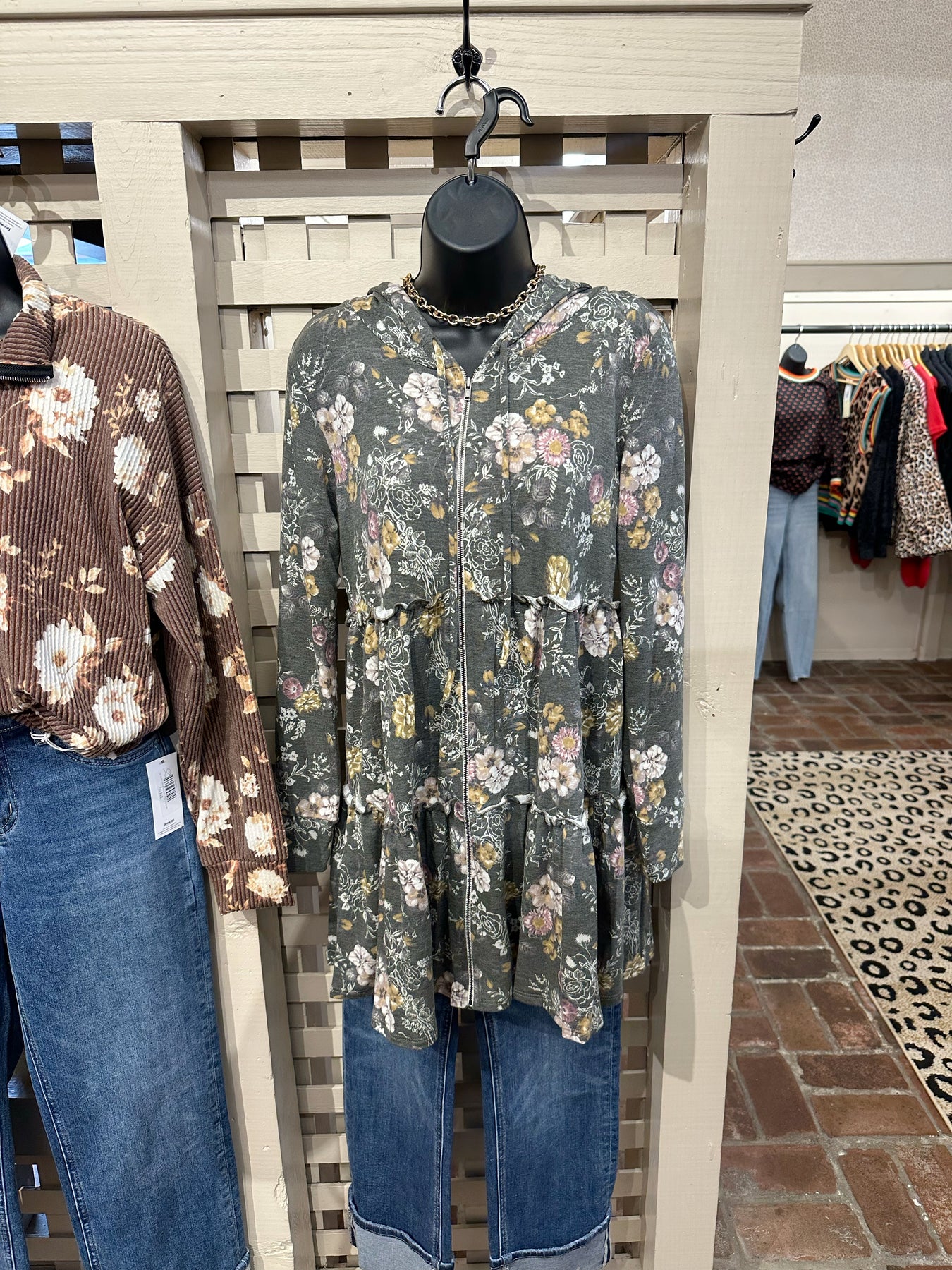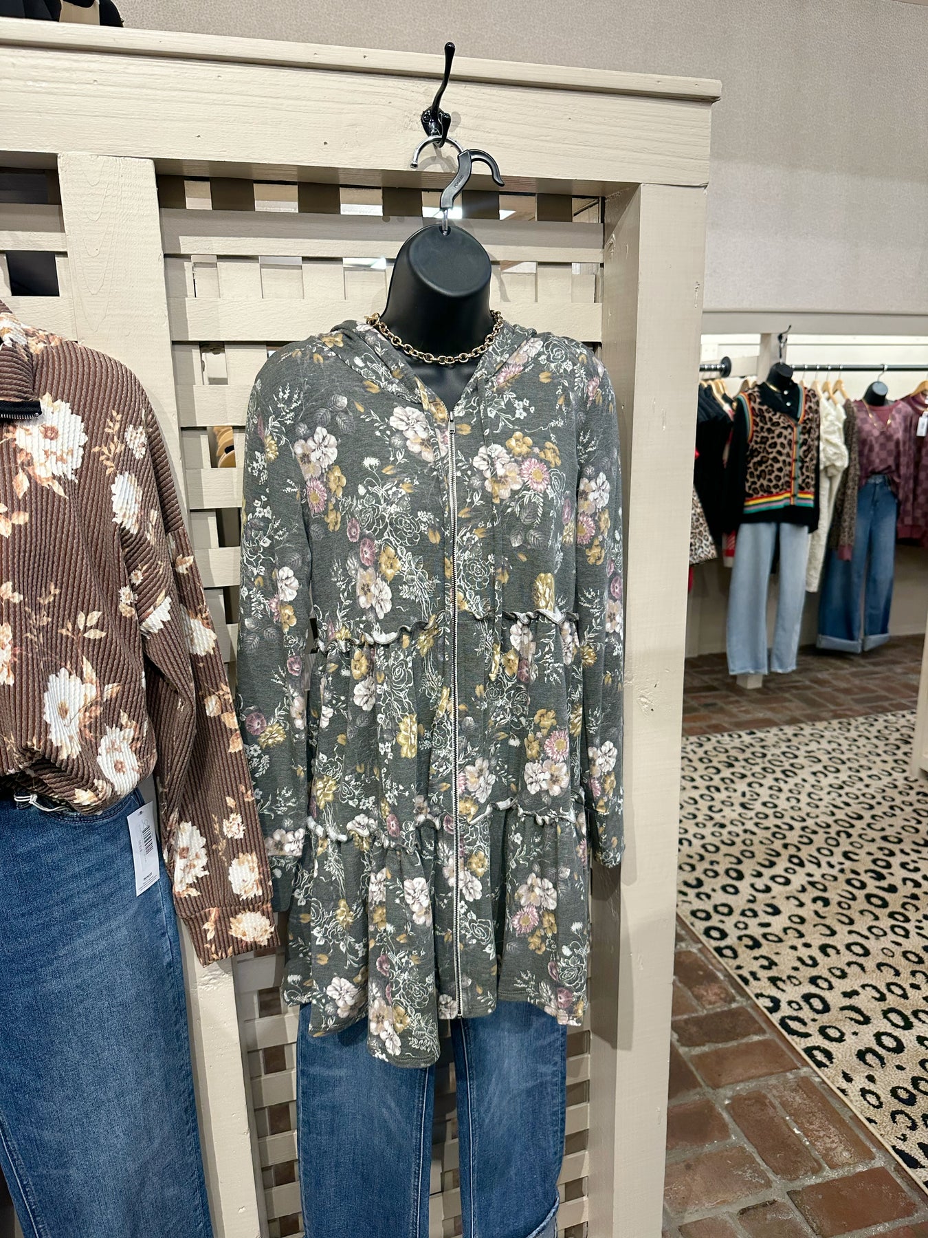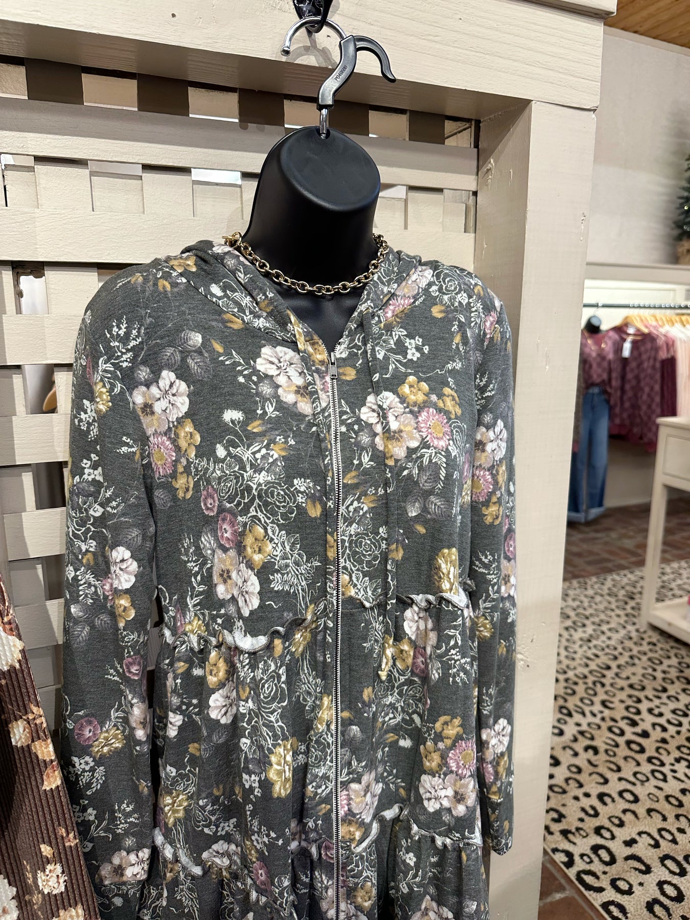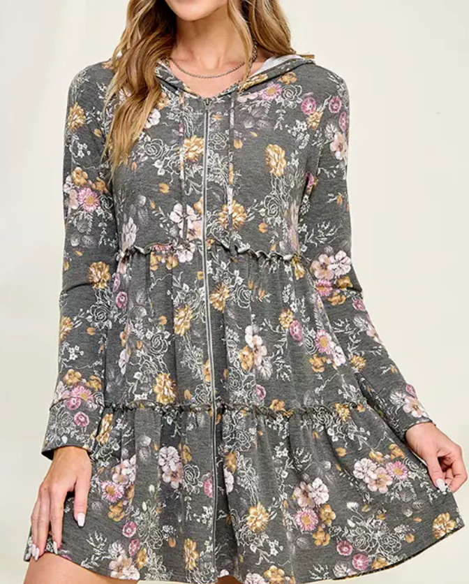 Elevate your everyday style with this stunning Tiered Floral Hoodie Dress—where feminine charm meets practical comfort. Three delicate ruffle tiers add a playful, romantic touch that sets this piece apart, while the integrated hoodie and full zipper provide the functionality you need for effortless layering and all-day wear. Perfect for those who refuse to compromise between looking polished and feeling cozy, this versatile dress transitions seamlessly from casual outings to relaxed gatherings. It's the wardrobe essential that proves you can have it all.