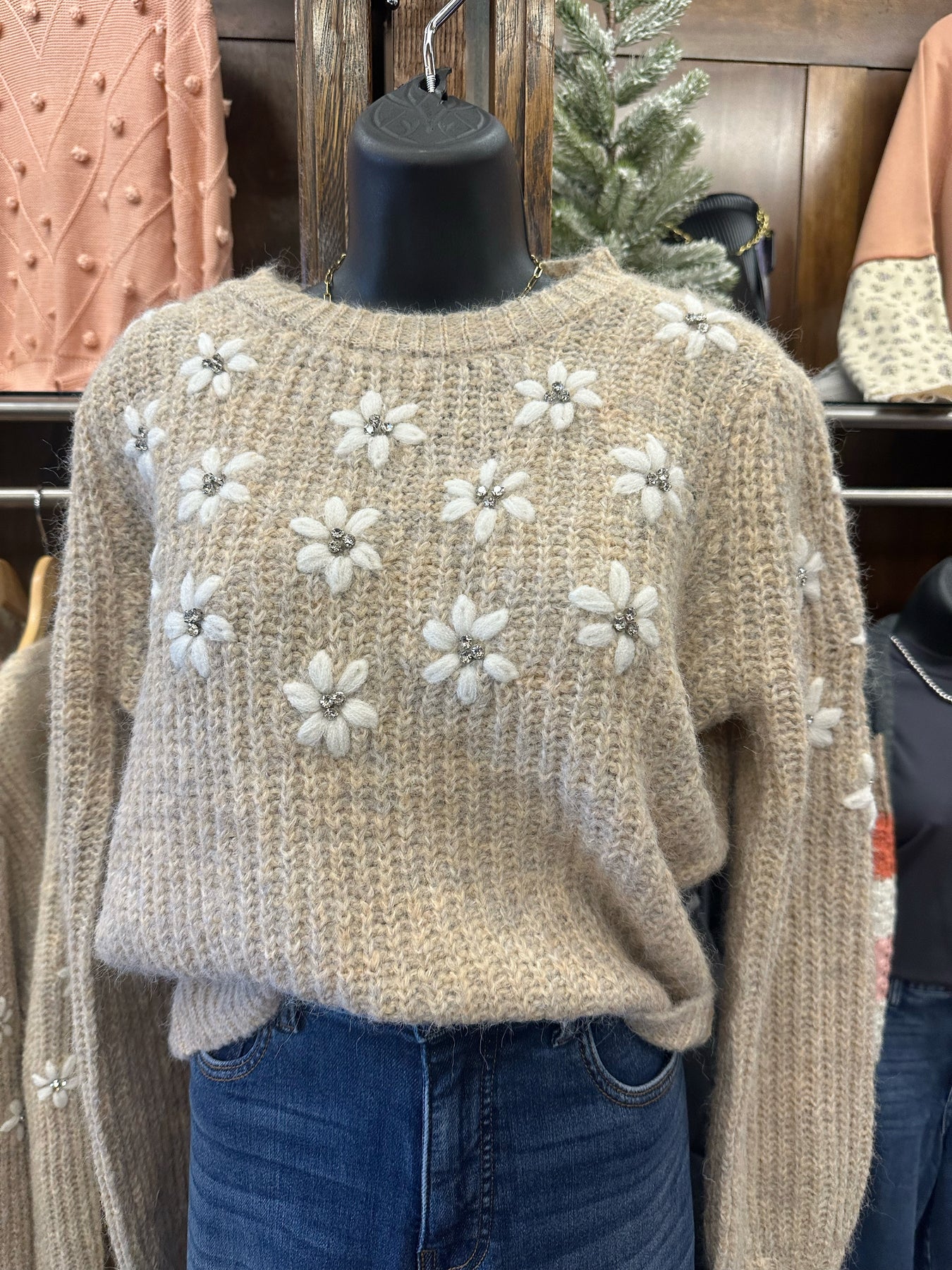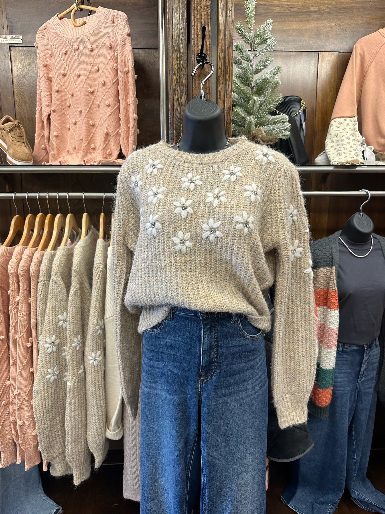Elevate your everyday wardrobe with this charming flower embroidered sweater in soft taupe. Delicate floral details add a touch of sophistication and personality to a timeless neutral shade that pairs effortlessly with any outfit. Perfect for layering or wearing solo, this piece brings understated elegance to casual days and polished looks alike. The taupe hue flatters all skin tones while the intricate embroidery creates visual interest without overwhelming your style. Invest in a sweater that transcends seasons and trends—a versatile essential that becomes an instant favorite.