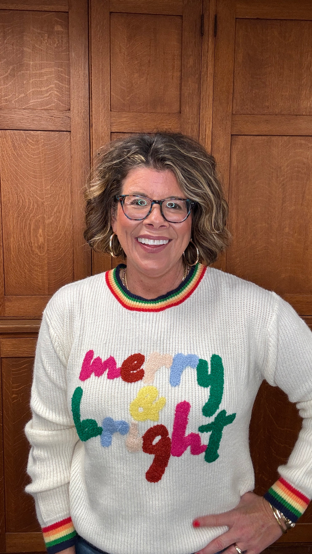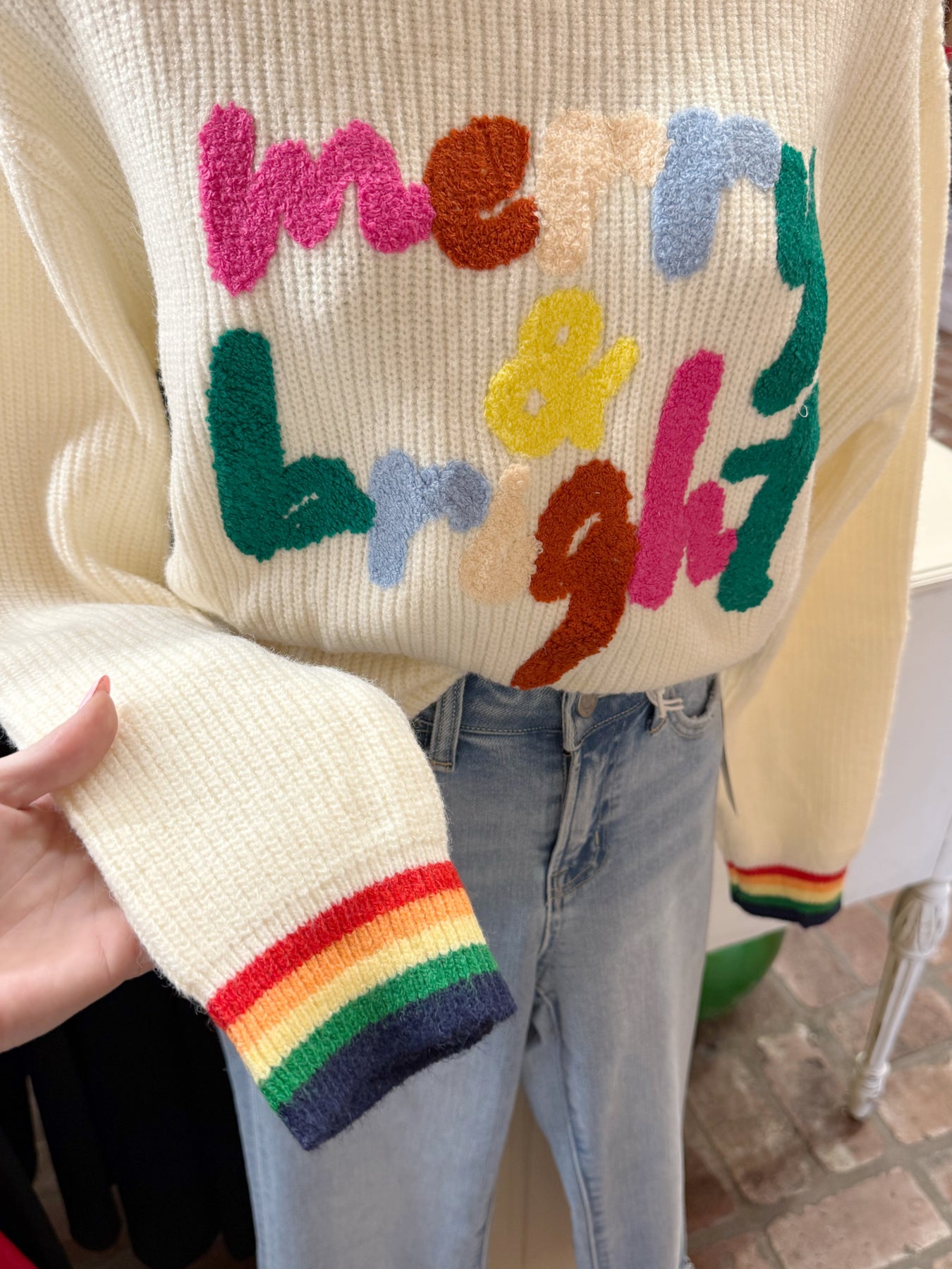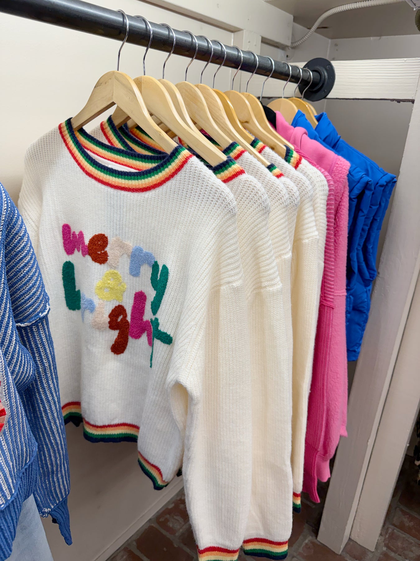 Embrace the festive spirit with this charming drop shoulder sweater that brings holiday cheer to your wardrobe. Featuring a playful rainbow band accent that adds a pop of color and personality, this cozy top delivers both comfort and style. The relaxed drop shoulder silhouette creates an effortlessly cool vibe perfect for casual gatherings or holiday celebrations. Crafted for warmth without the bulk, it's your go-to piece for spreading merry and bright vibes all season long.