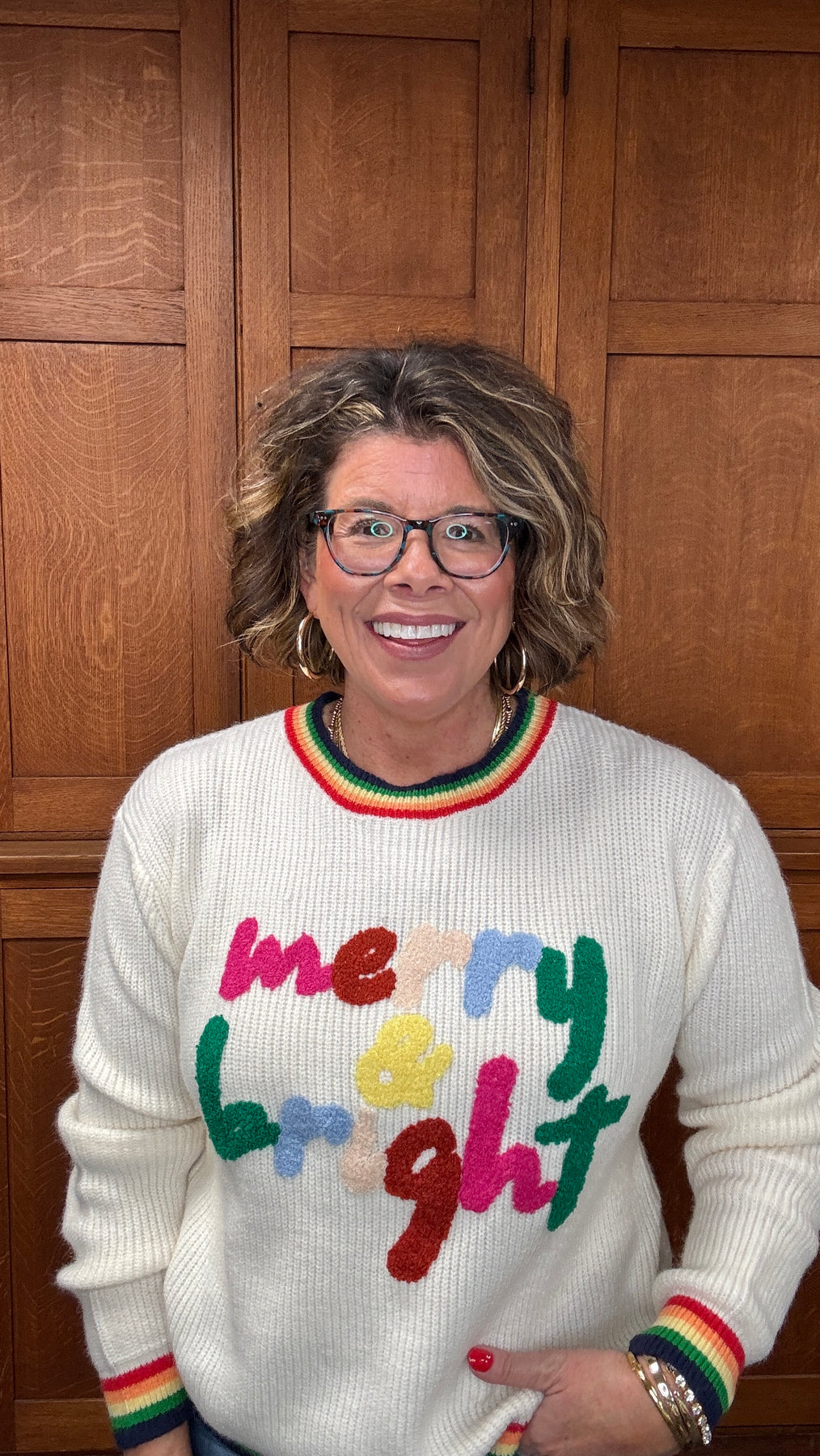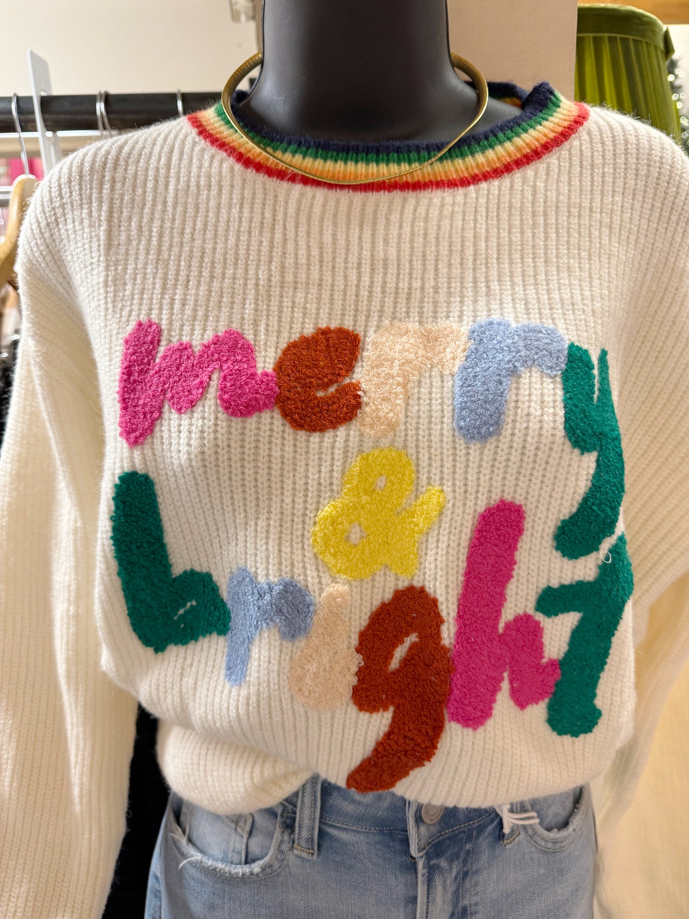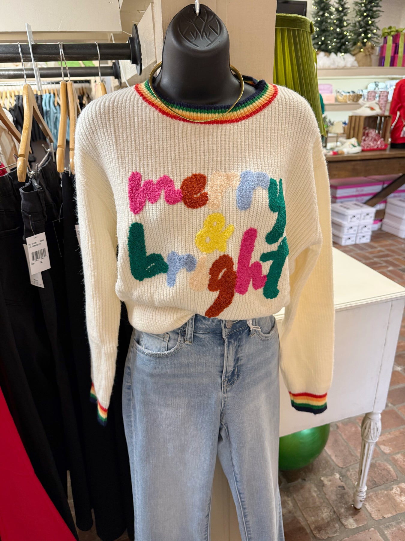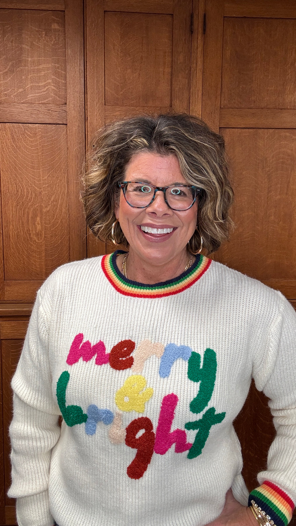 Embrace the festive spirit with this charming drop shoulder sweater that brings holiday cheer to your wardrobe. Featuring a playful rainbow band accent that adds a pop of color and personality, this cozy top delivers both comfort and style. The relaxed drop shoulder silhouette creates an effortlessly cool vibe perfect for casual gatherings or holiday celebrations. Crafted for warmth without the bulk, it's your go-to piece for spreading merry and bright vibes all season long.