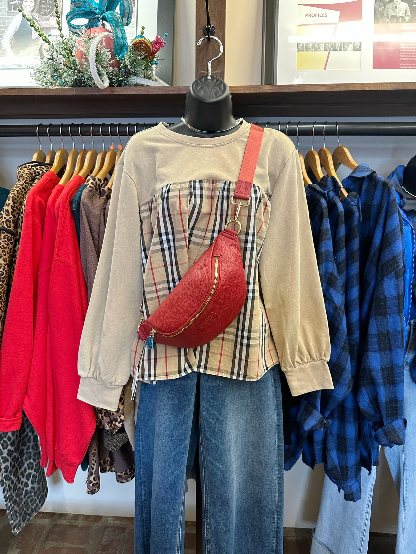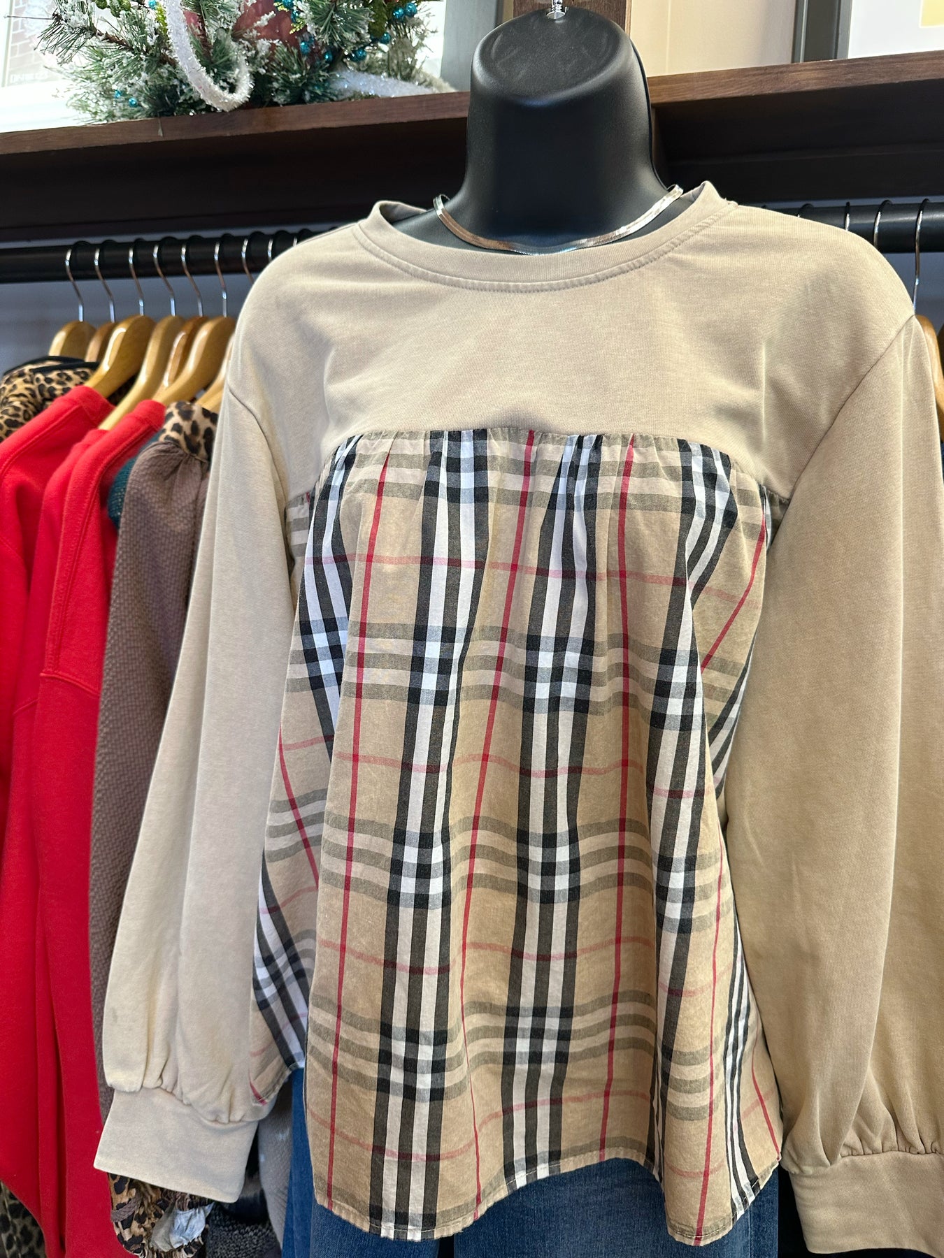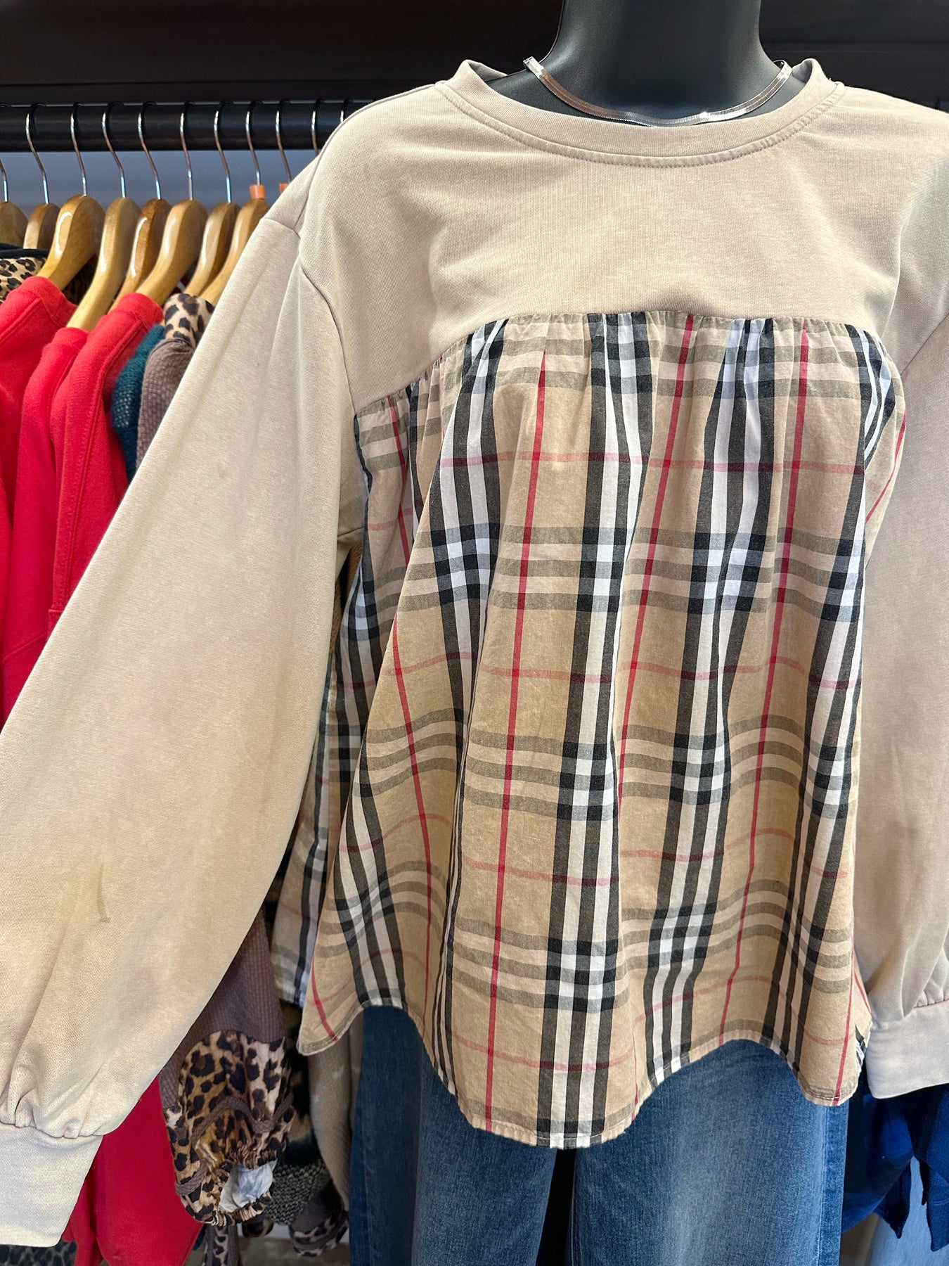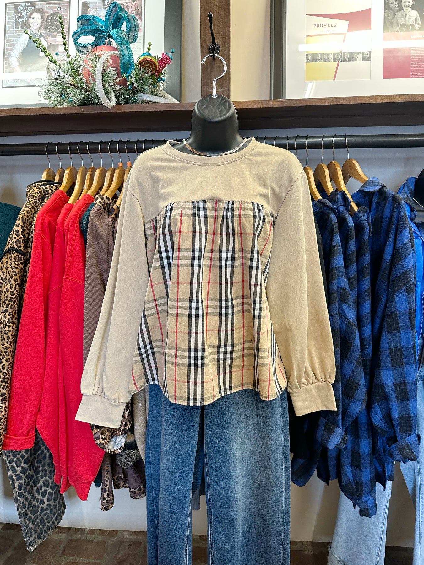 Effortlessly blend classic style with modern versatility in this drop shoulder mix top. Featuring a striking combination of solid and plaid panels, it delivers visual interest while maintaining a relaxed, contemporary silhouette. The generous drop shoulder cut offers comfortable movement and a flattering fit that works for casual outings or layered styling. Perfect for those who love mixing patterns without compromising on wearability, this piece transitions seamlessly from day to night.