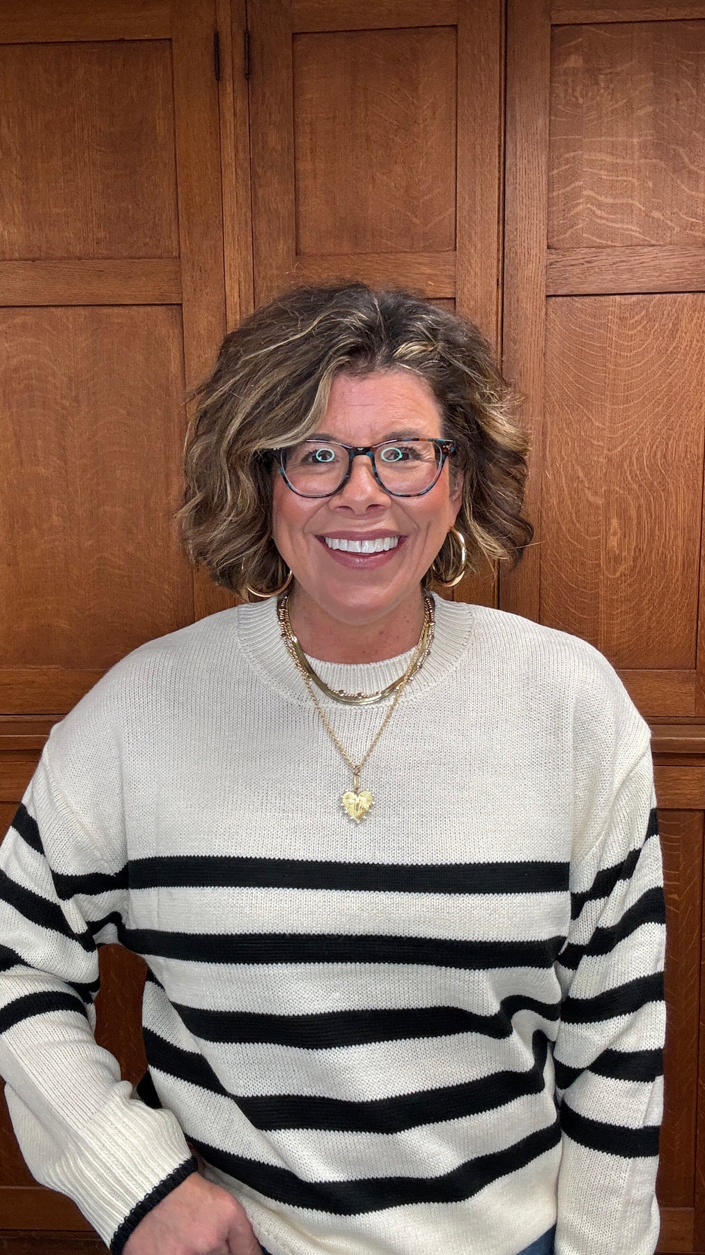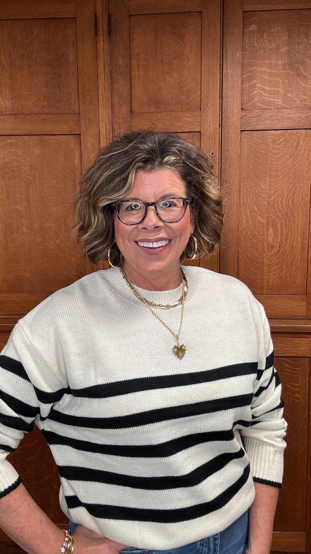 Effortless style meets everyday comfort in this striped crewneck sweater. The classic pattern and relaxed silhouette make it a versatile wardrobe essential that transitions seamlessly from season to season. Layer it over a collared shirt for polished casual elegance, or pair with distressed denim for weekend ease. Whether you're heading to the office or enjoying a laid-back day out, this sweater delivers the perfect balance of comfort and sophistication that keeps you looking put-together without the effort.