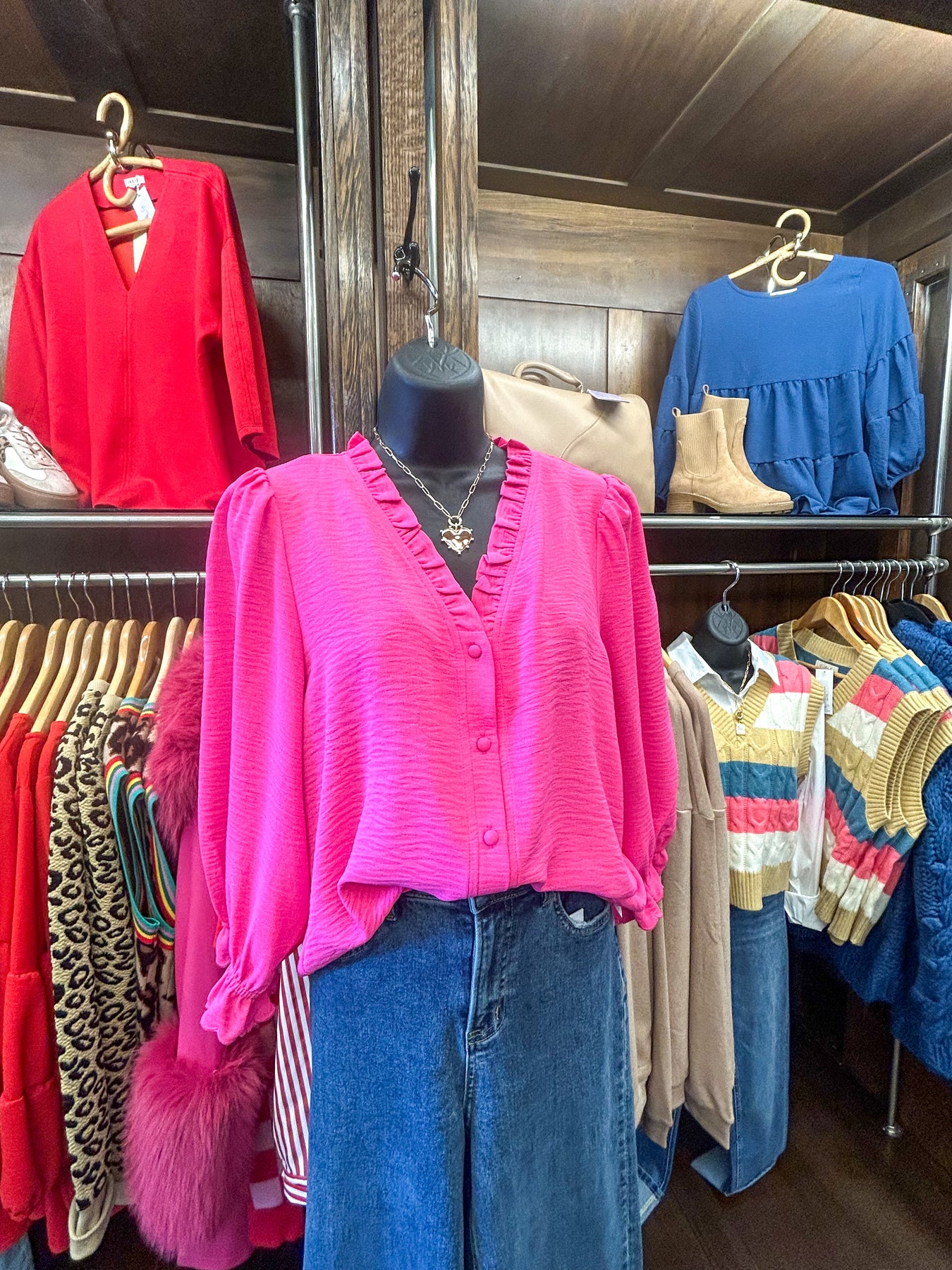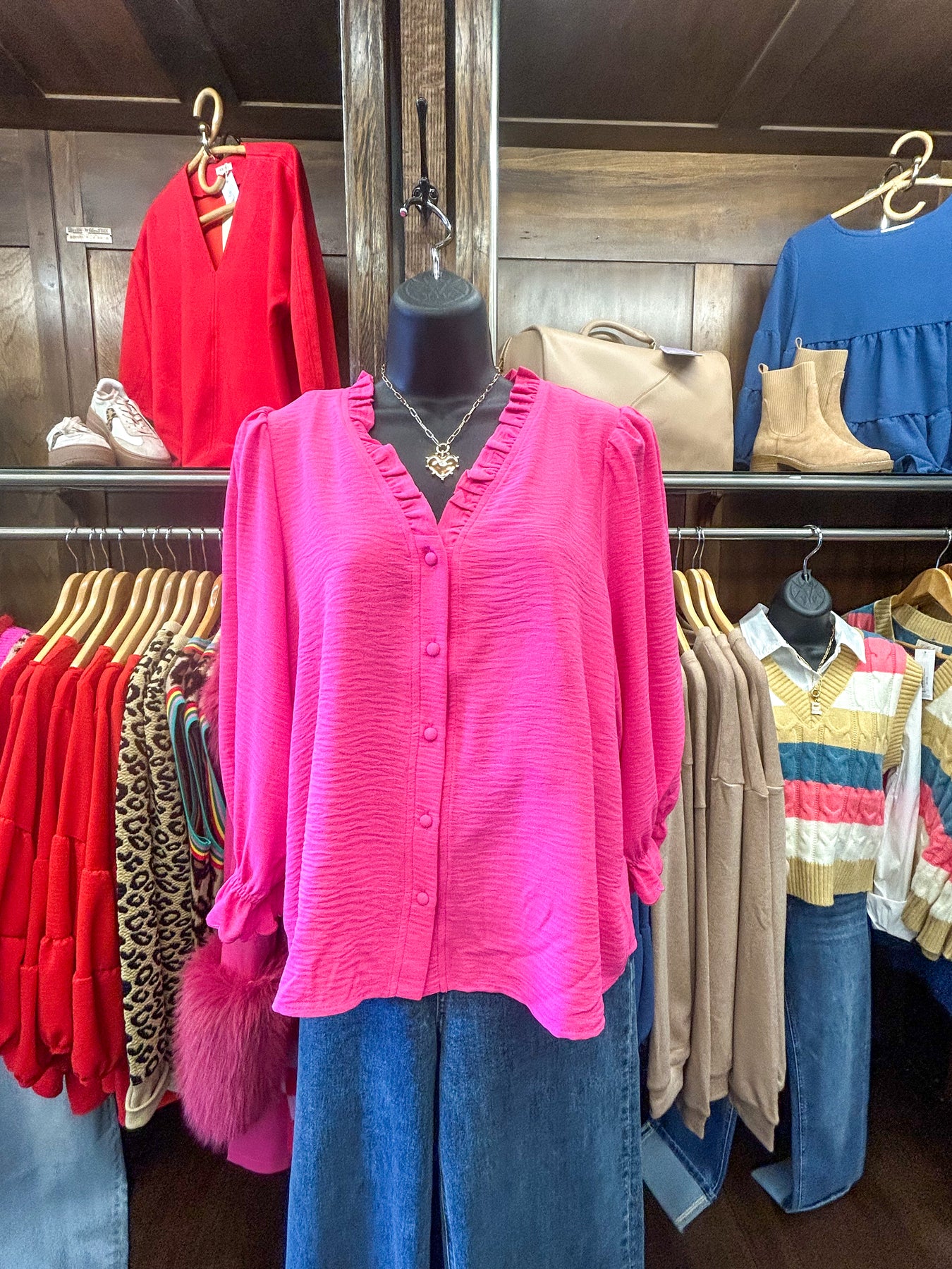 3/4 Puff Sleeves Button Down - Bubble Gum Pink