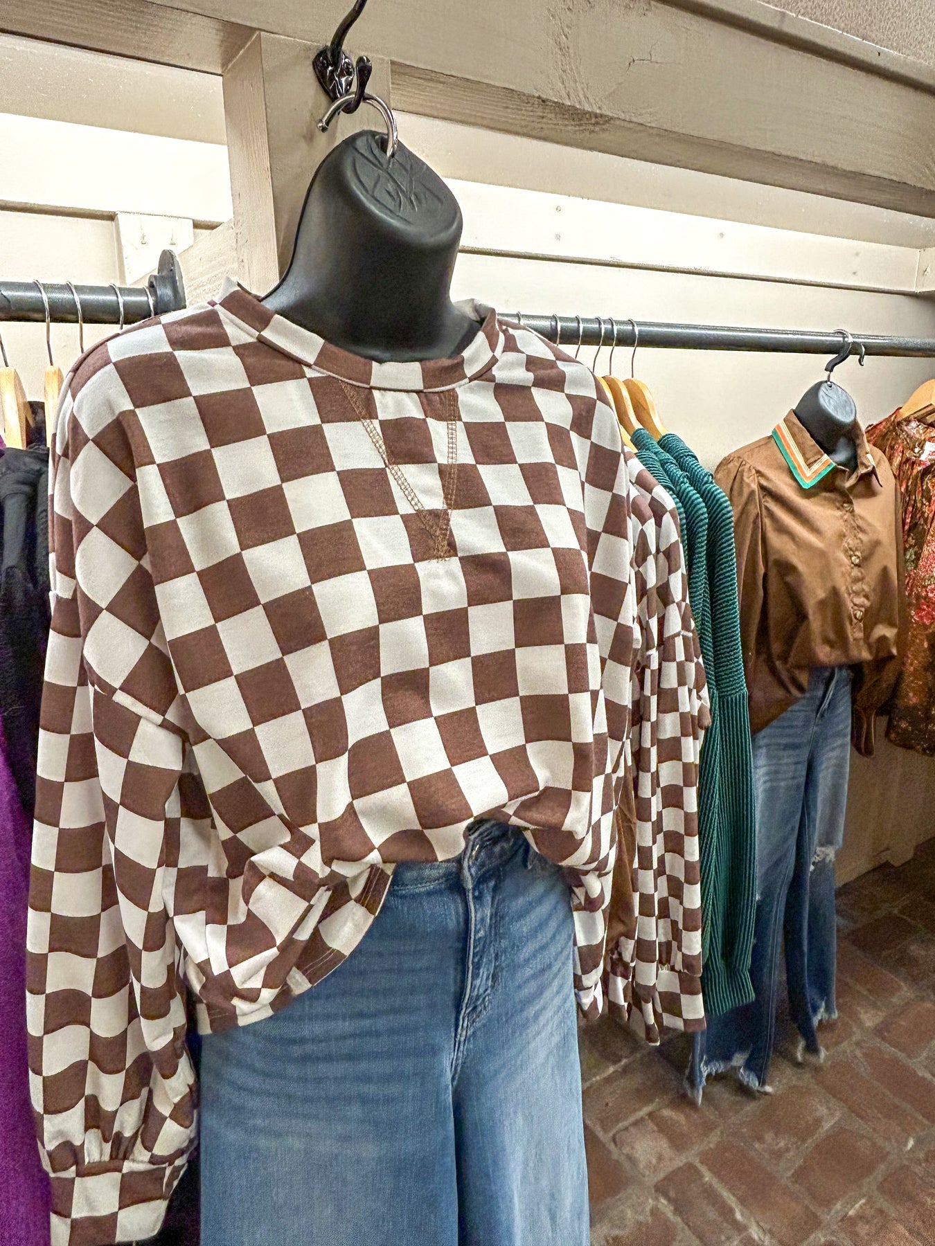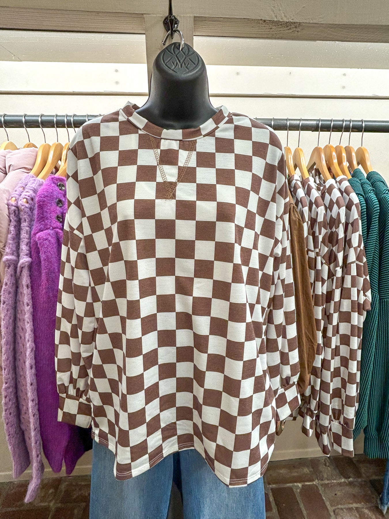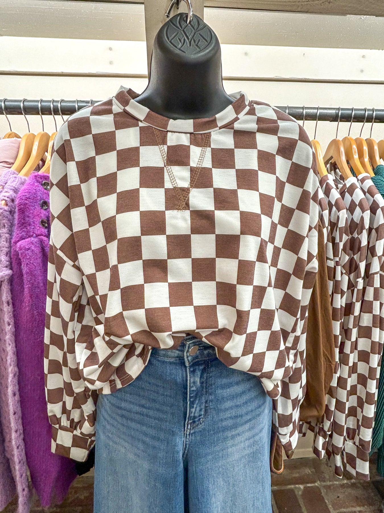 Wrap yourself in effortless comfort with this checkered brown top, designed for those who refuse to compromise on style. The ultra-soft fleece fabric feels like a warm embrace against your skin, while the relaxed fit and dropped shoulders create a flattering silhouette that works for any occasion. With its timeless crew neckline and versatile checkered pattern, this piece seamlessly transitions from lazy mornings at home to casual outings with friends. Whether you're settling in for a cozy night in or running errands around town, this top delivers the perfect balance of laid-back charm and polished appeal that keeps you looking put-together without the effort.