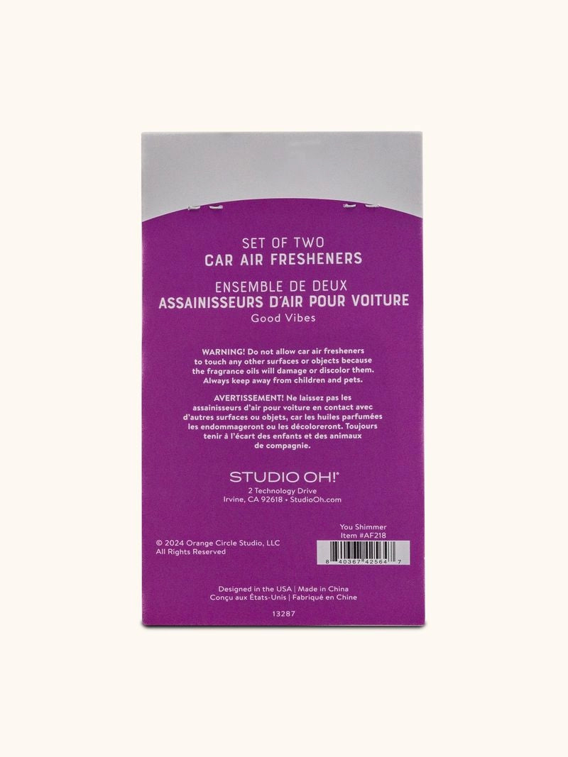 Make your drive time more pleasant with colorful car air fresheners from Studio Oh! These fragrance-infused designs help eliminate malodors and create long-lasting freshness in your vehicle. With two car air fresheners per package, you can mix and match designs between cars or keep a spare tucked in your glove box.
