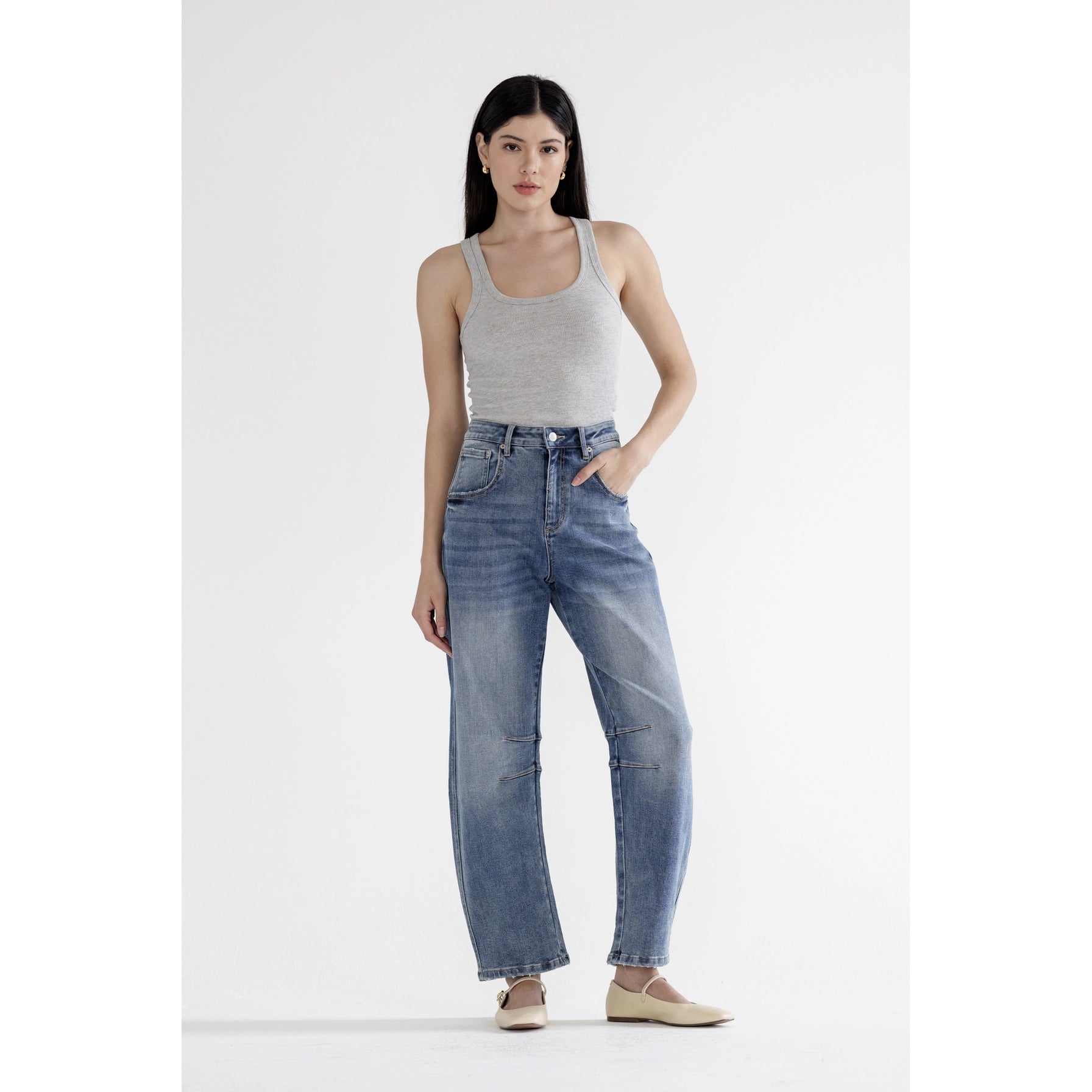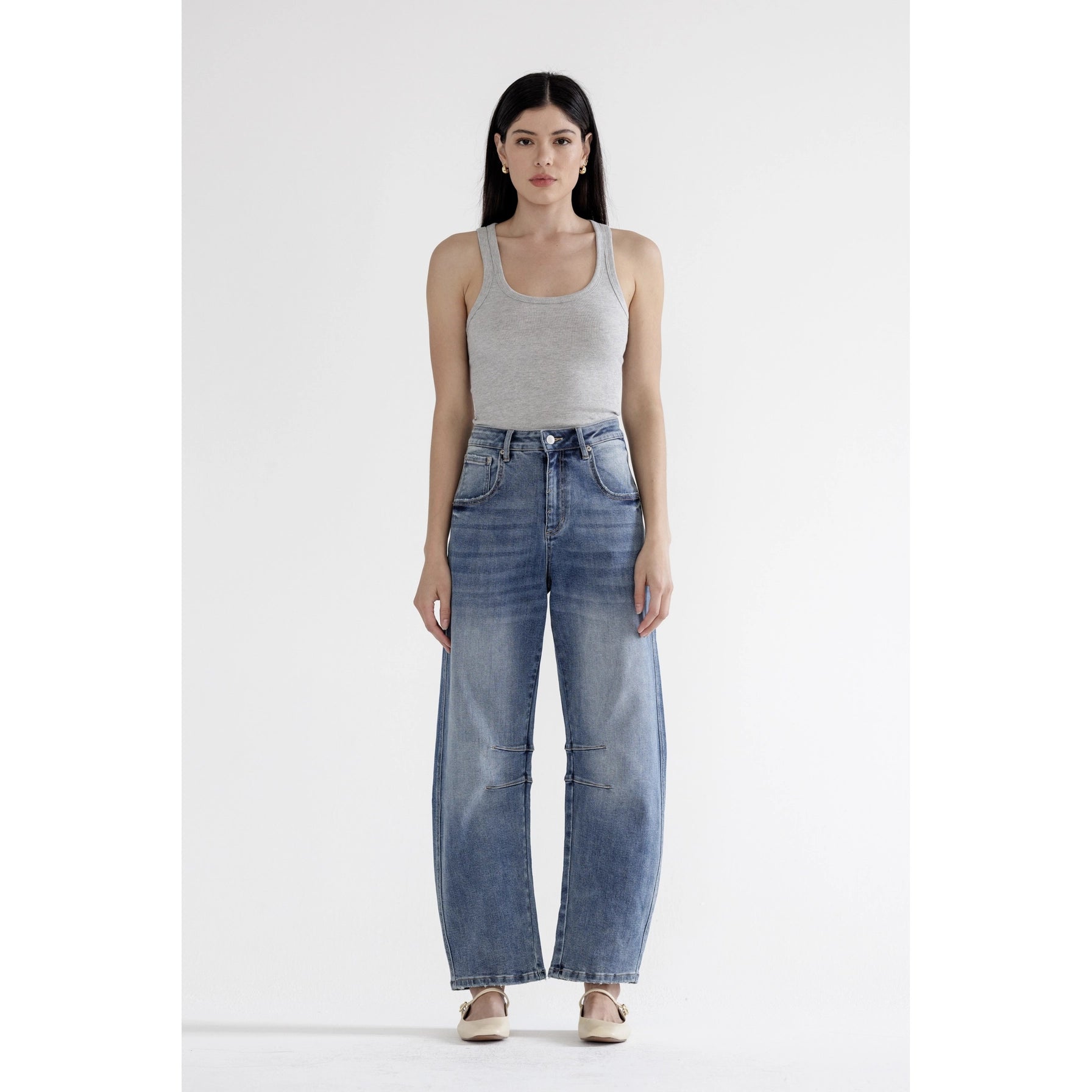Elevate your denim game with these Mica Super High Ankle Barrel Leg Jeans in Dark Sapphire. The ultra-high rise creates a flattering silhouette while the relaxed barrel leg offers modern comfort and style. Crafted for those who refuse to compromise on fashion, this versatile dark wash pairs effortlessly with everything from sneakers to heels. Make a statement with a cut that's both on-trend and timelessly cool.