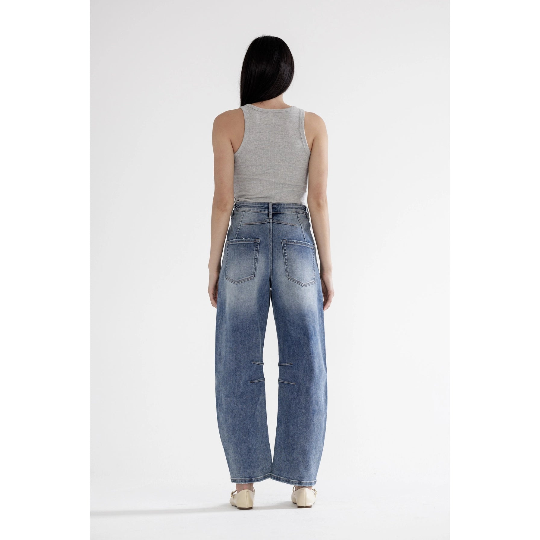 Mica Super High Ankle Barrel Leg Jeans - Dark Sapphire