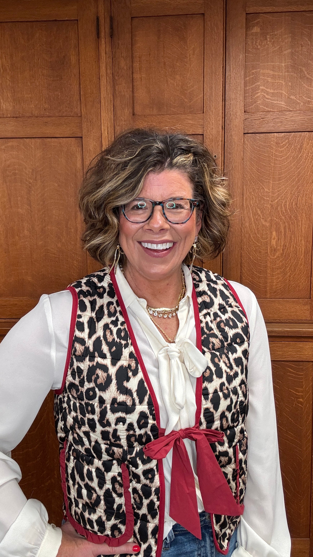 Layer up with effortless style in this printed quilted vest, featuring bold leopard, bow, and floral designs that make a statement. The adjustable front tie lets you customize the fit while functional front pockets keep essentials within reach. Perfect for adding dimension to any outfit, this versatile piece transitions seamlessly from casual to polished looks.