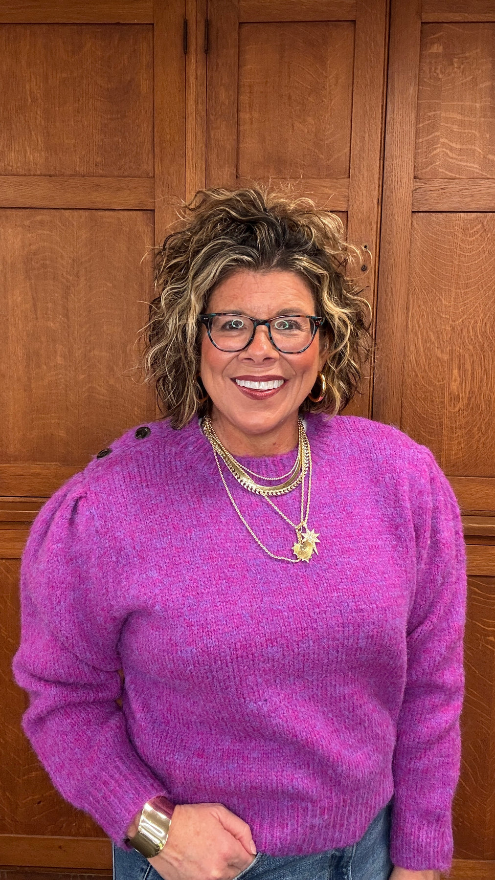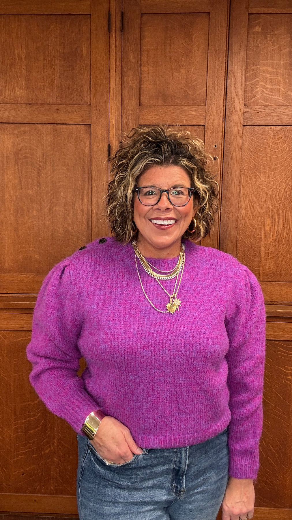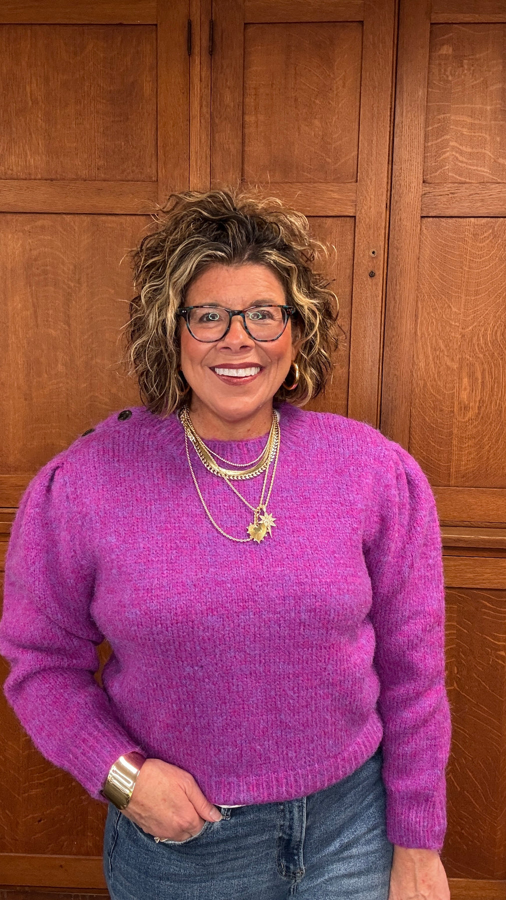 Elevate your cold-weather style with the Purple Shoulder Button Sweater, a versatile knit that combines comfort with contemporary flair. Crafted from ultra-soft yarn, this piece features a timeless crew neckline, delicate puff sleeves, and distinctive button details at the shoulders that add an unexpected sophistication. The rich purple tone works beautifully with your existing wardrobe—pair it with jeans for casual weekends or layer it over collared shirts for polished workdays. Designed for those who refuse to compromise between warmth and fashion-forward appeal, this sweater becomes an instant favorite you'll reach for again and again.