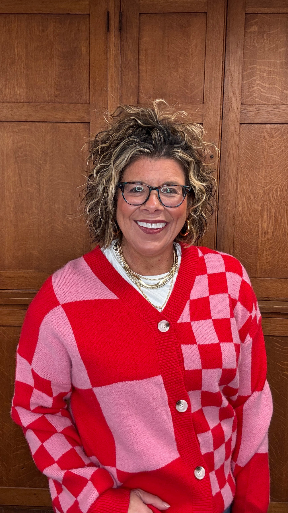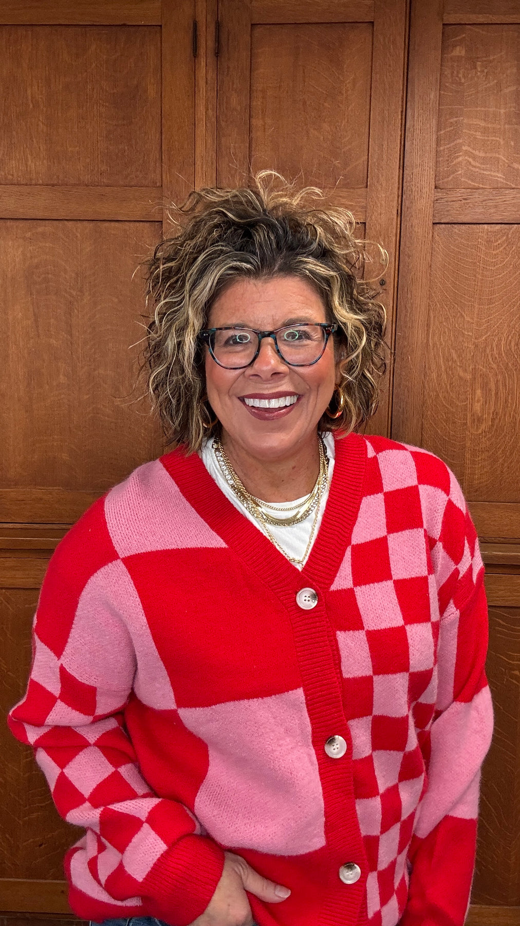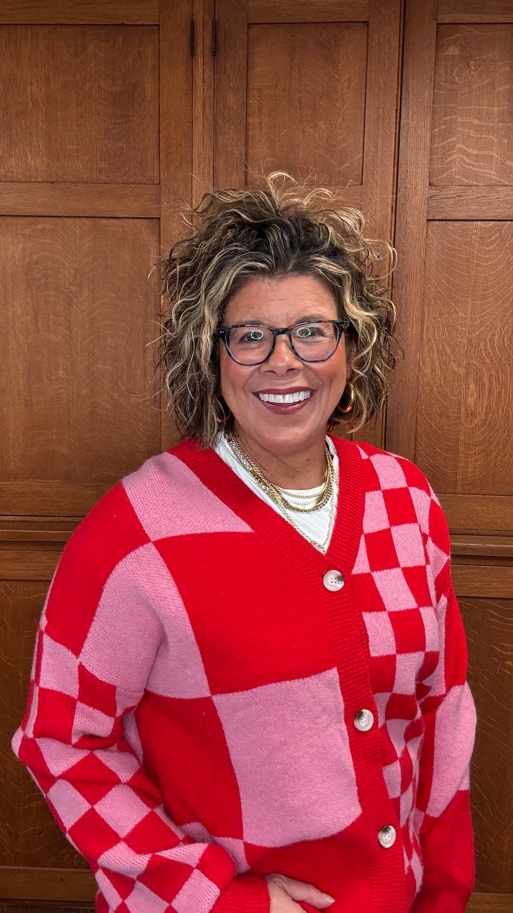 Elevate your layering game with this Red Plaid Button Sweater, where mixed plaid patterns deliver understated sophistication. The relaxed, oversized cut wraps you in comfort while offering endless styling possibilities—wear it buttoned as a standalone statement piece or open as a chic cover-up over your favorite tees and dresses. Designed for transitional seasons, this versatile cardigan transitions seamlessly from casual weekends to effortless office looks. Whether you're seeking that perfect layering piece or a go-to sweater that works with everything in your closet, this plaid essential combines comfort and style in one timeless silhouette.