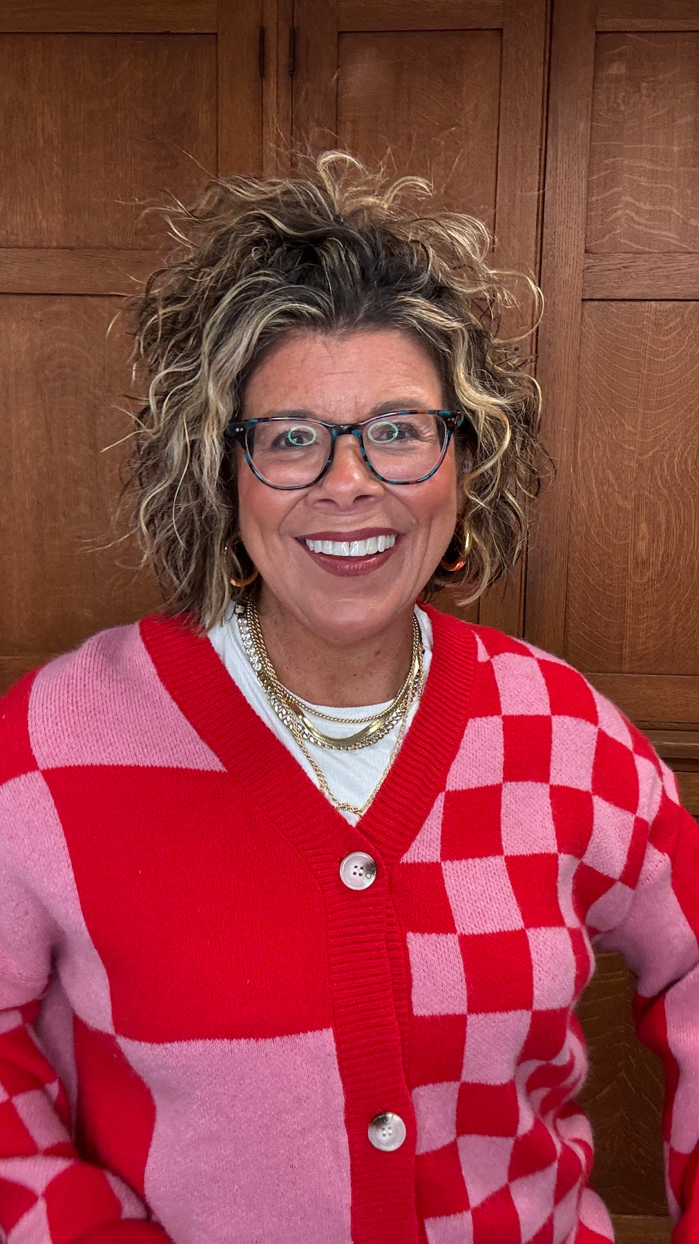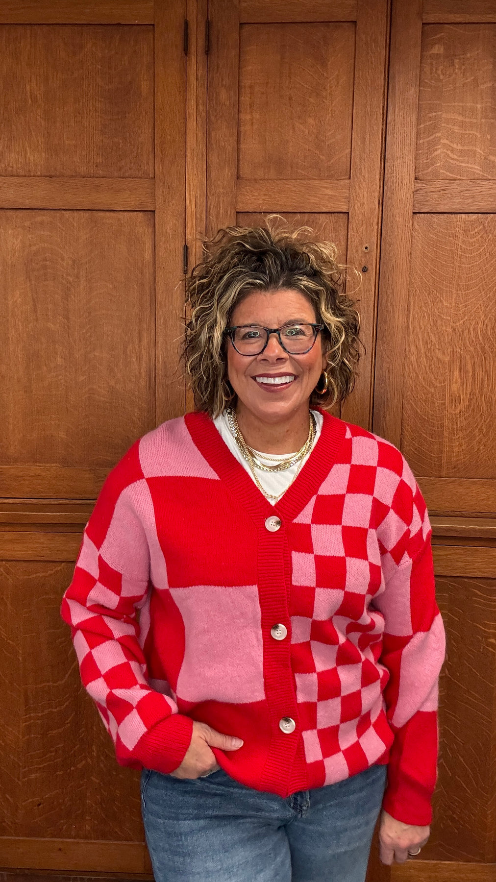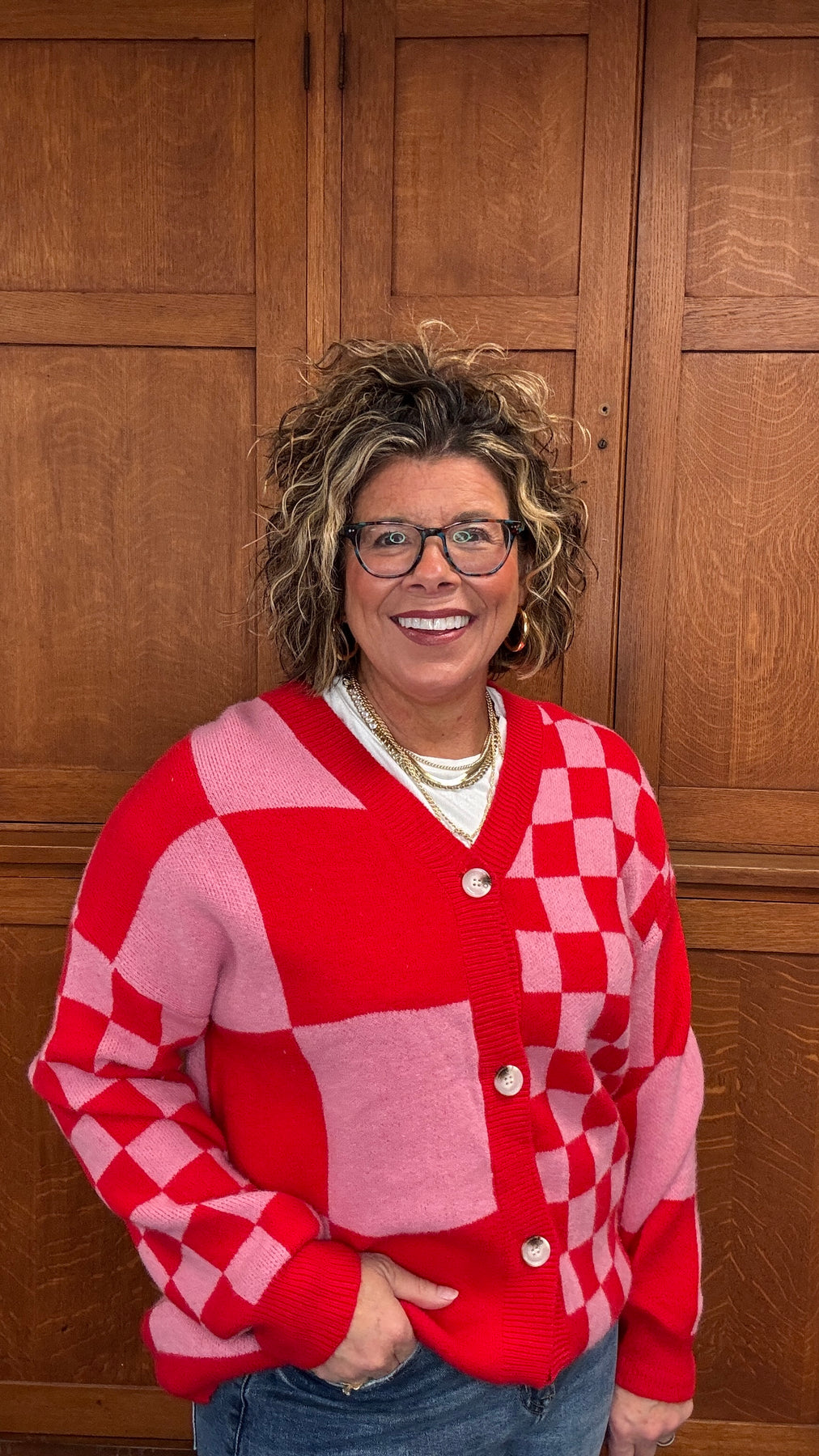 Elevate your layering game with this Red Plaid Button Sweater, where mixed plaid patterns deliver understated sophistication. The relaxed, oversized cut wraps you in comfort while offering endless styling possibilities—wear it buttoned as a standalone statement piece or open as a chic cover-up over your favorite tees and dresses. Designed for transitional seasons, this versatile cardigan transitions seamlessly from casual weekends to effortless office looks. Whether you're seeking that perfect layering piece or a go-to sweater that works with everything in your closet, this plaid essential combines comfort and style in one timeless silhouette.