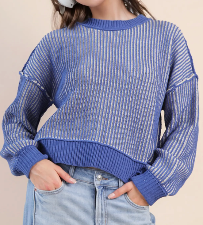 Effortlessly chic and undeniably comfortable, this two-tone striped sweater top combines casual style with versatile appeal. Featuring a relaxed oversized fit and drop shoulder design, it drapes beautifully for a modern silhouette that flatters all body types. The round neckline and ribbed hem provide structure while the long sleeves offer warmth and coverage. Perfect for layering or wearing solo, this striped essential transitions seamlessly from weekend errands to casual outings. Elevate your everyday wardrobe with a piece that delivers both comfort and contemporary style.