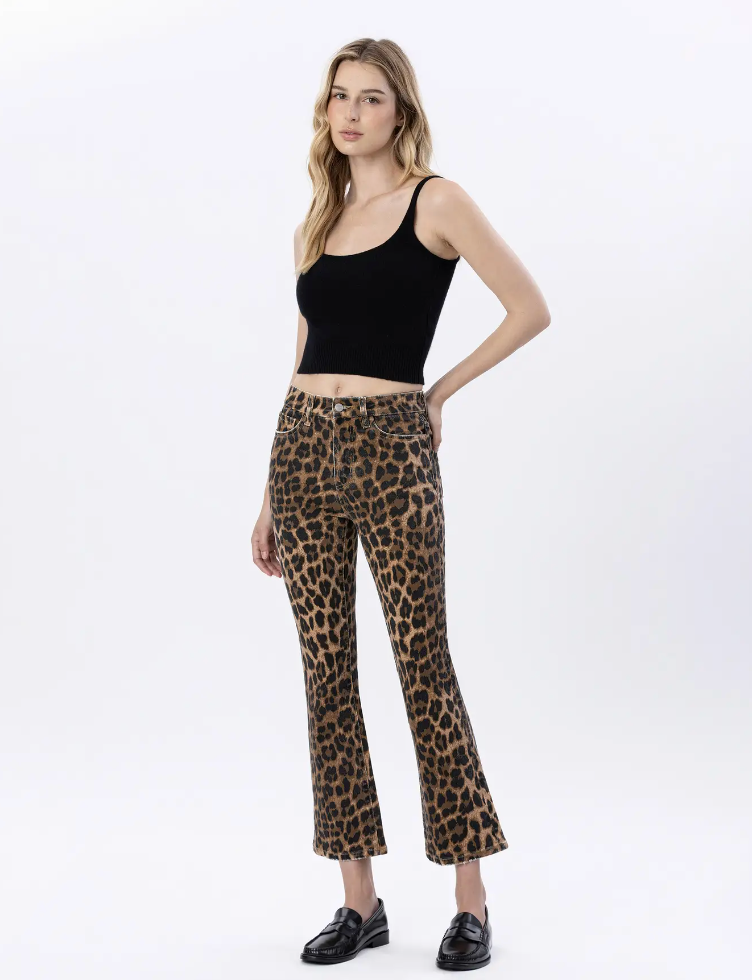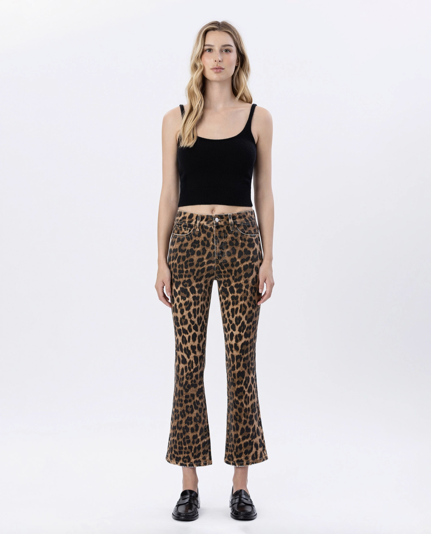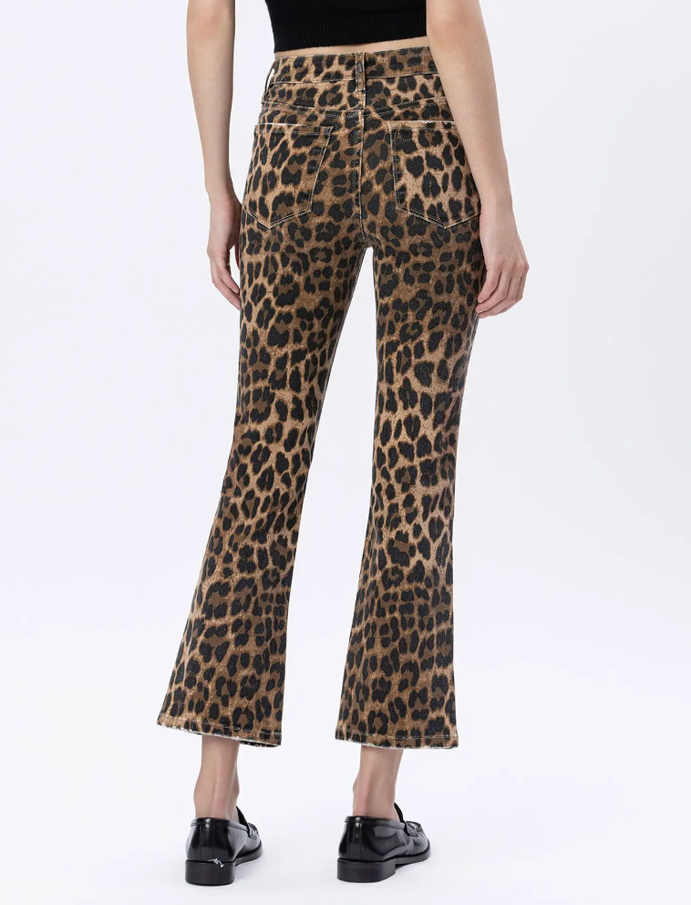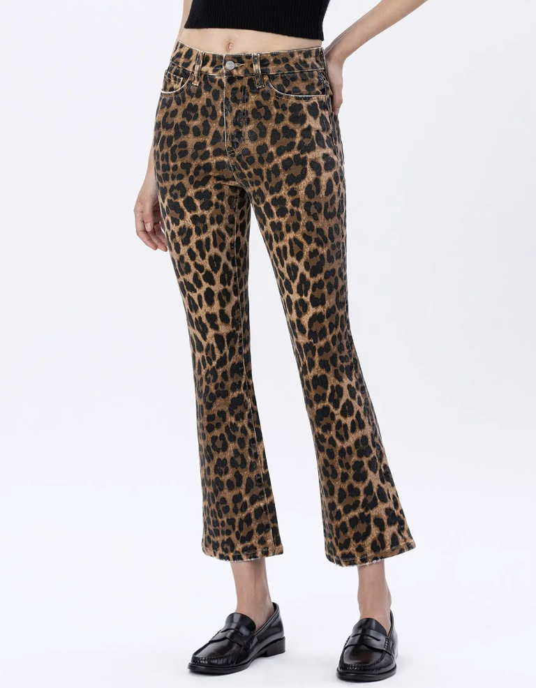 Elevate your denim game with these striking Vervet High Rise Leopard Print Kick Flare Jeans. Crafted from comfort stretch denim, they deliver all-day wearability without sacrificing style. The high-rise waist flatters your silhouette while the cropped kick flare cut adds a modern edge to any outfit. Bold leopard print detailing makes these jeans a statement piece that transitions effortlessly from casual weekends to night-out ready. Perfect for anyone seeking denim that combines comfort, confidence, and undeniable style.
